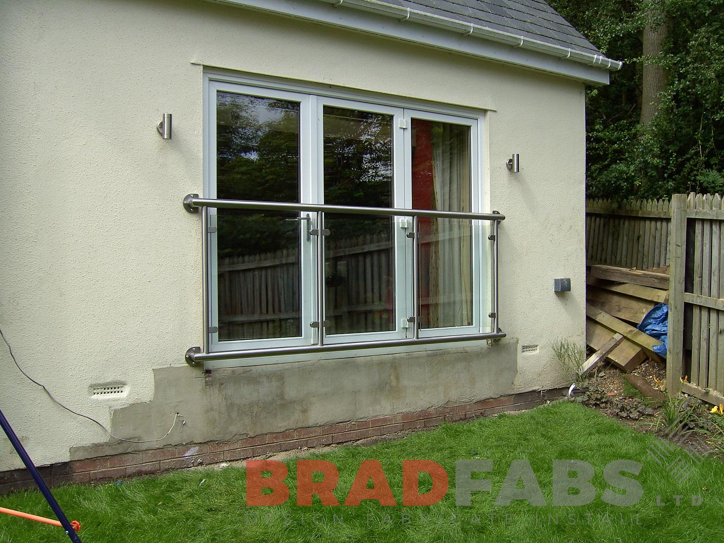 Contemporary Juliet balcony design with stainless steel and glass, giving better views of garden and outside.