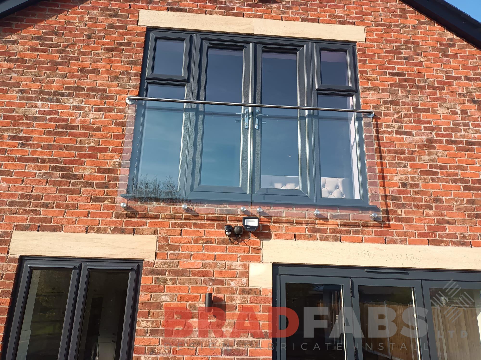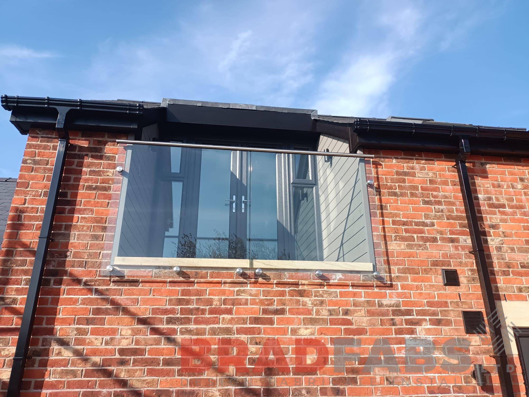 6No. bolt on infinity glass Balconettes with stainless steel top rail, bespoke by our Bradfabs team