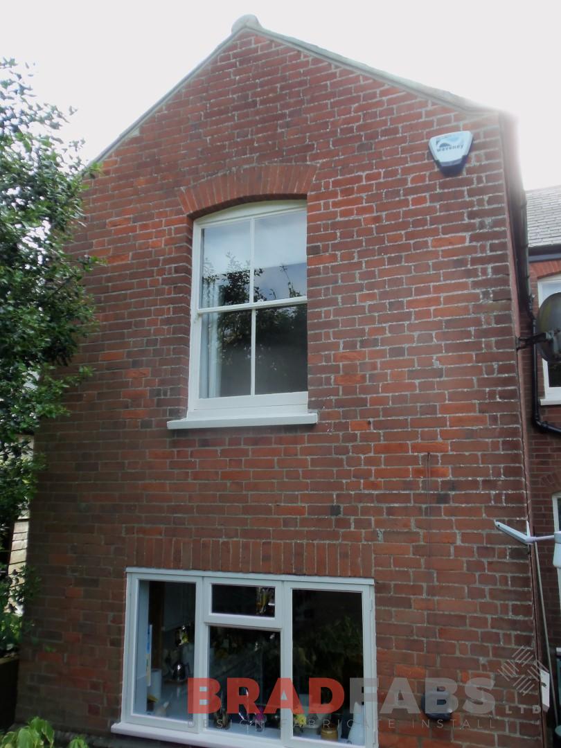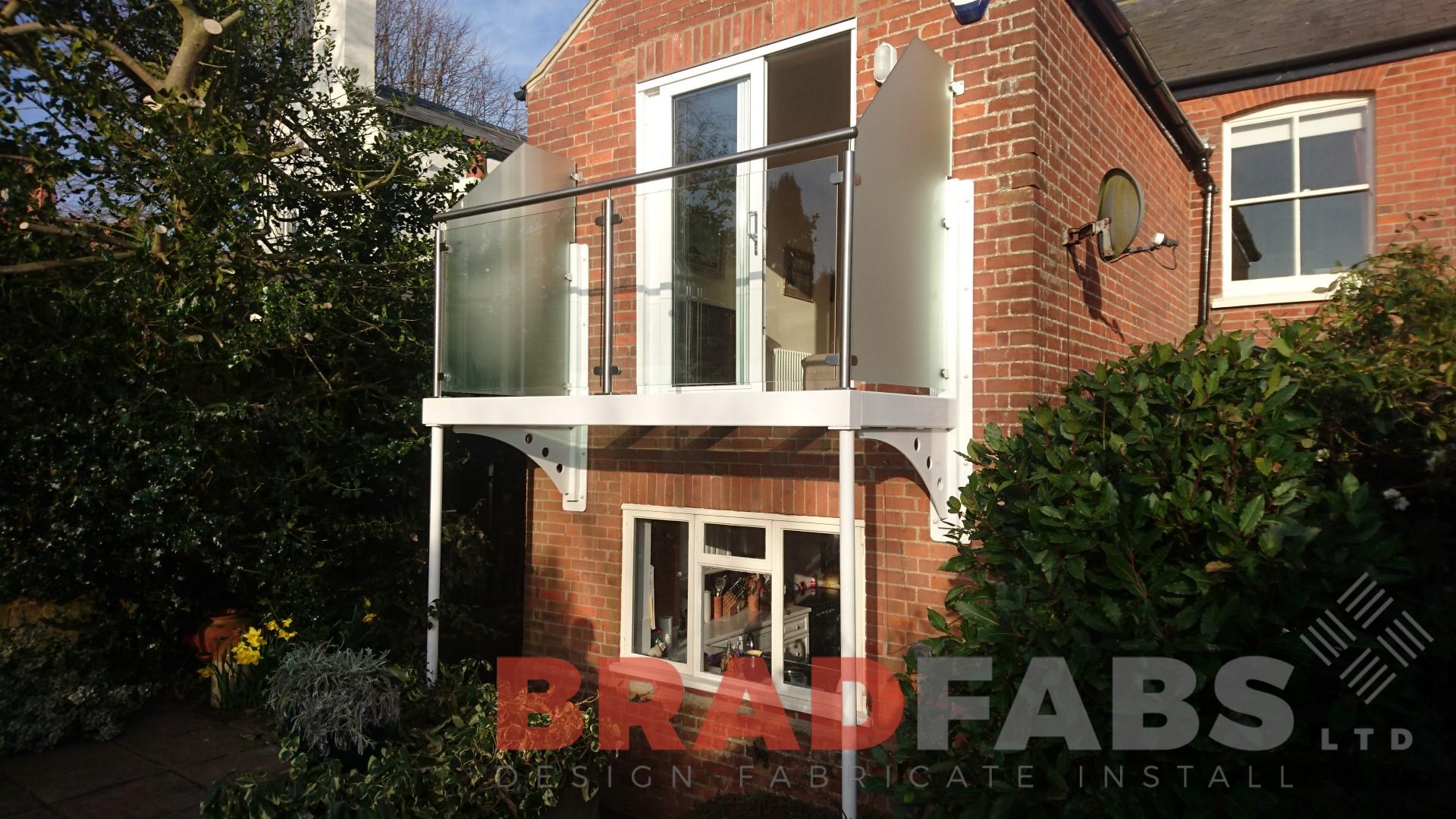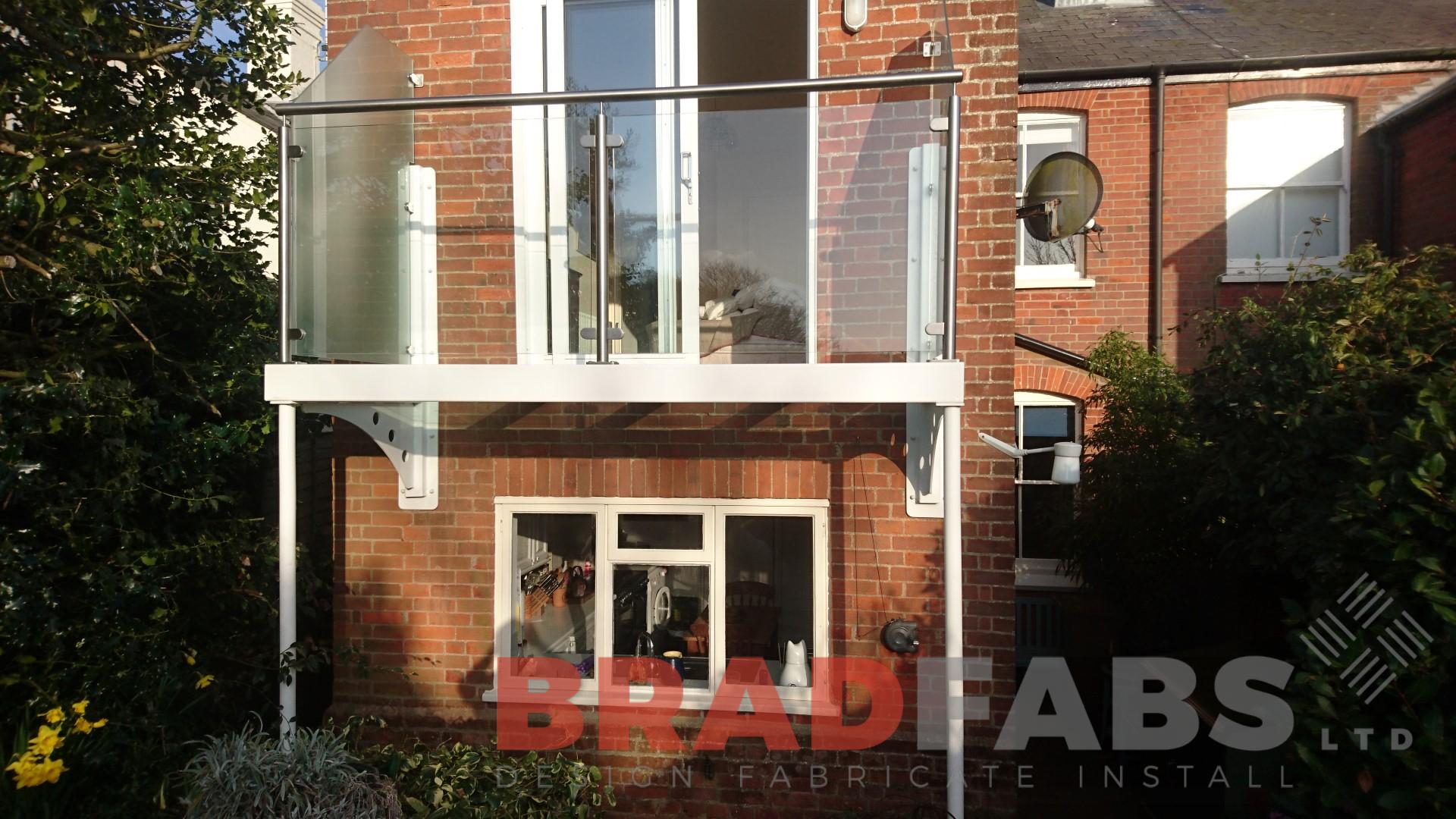 This balcony was manufactured and powder coated to match the existing colours of the windows. The customer opted for a clear glass floor to keep as much light as possible to the kitchen below.