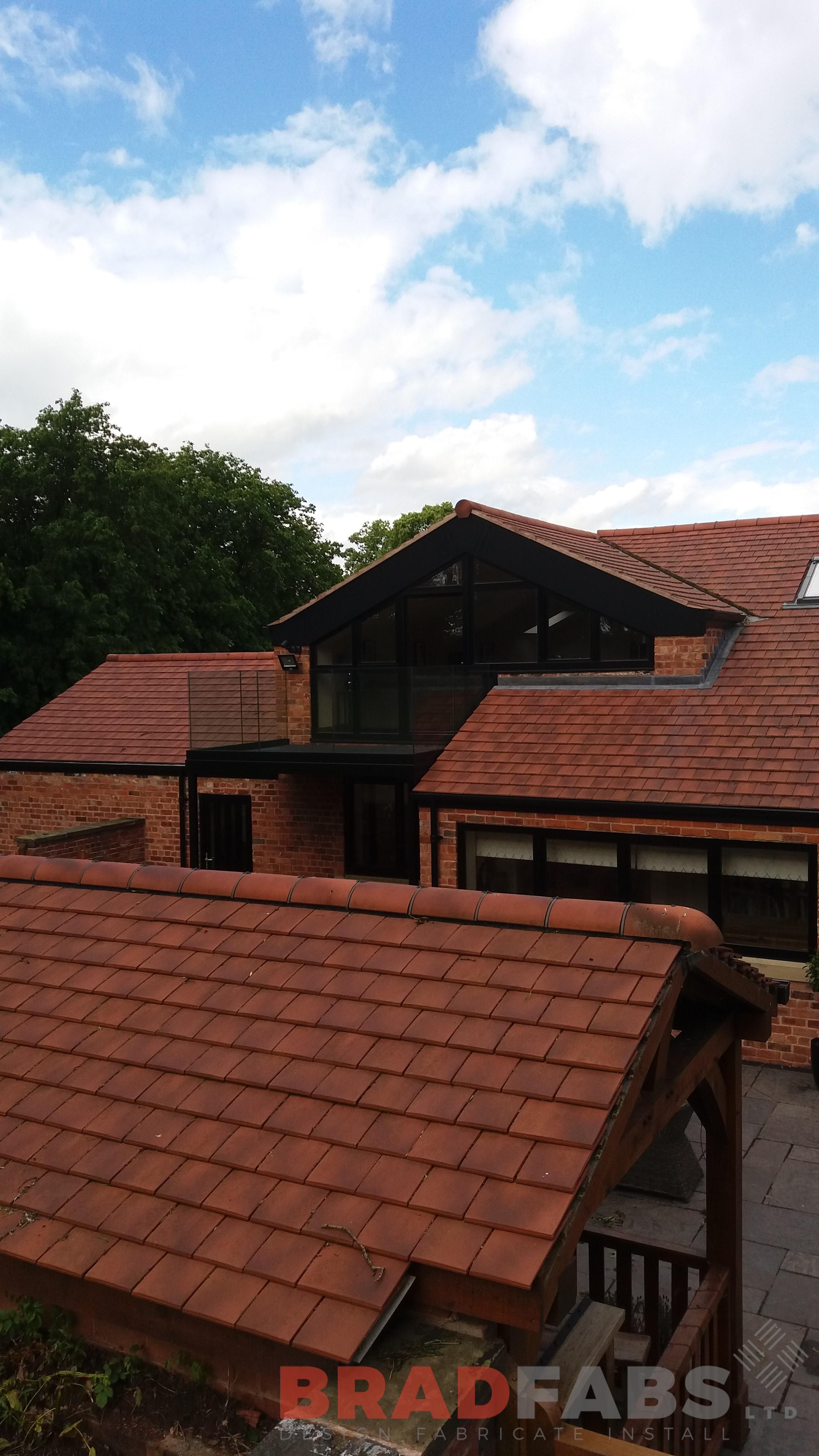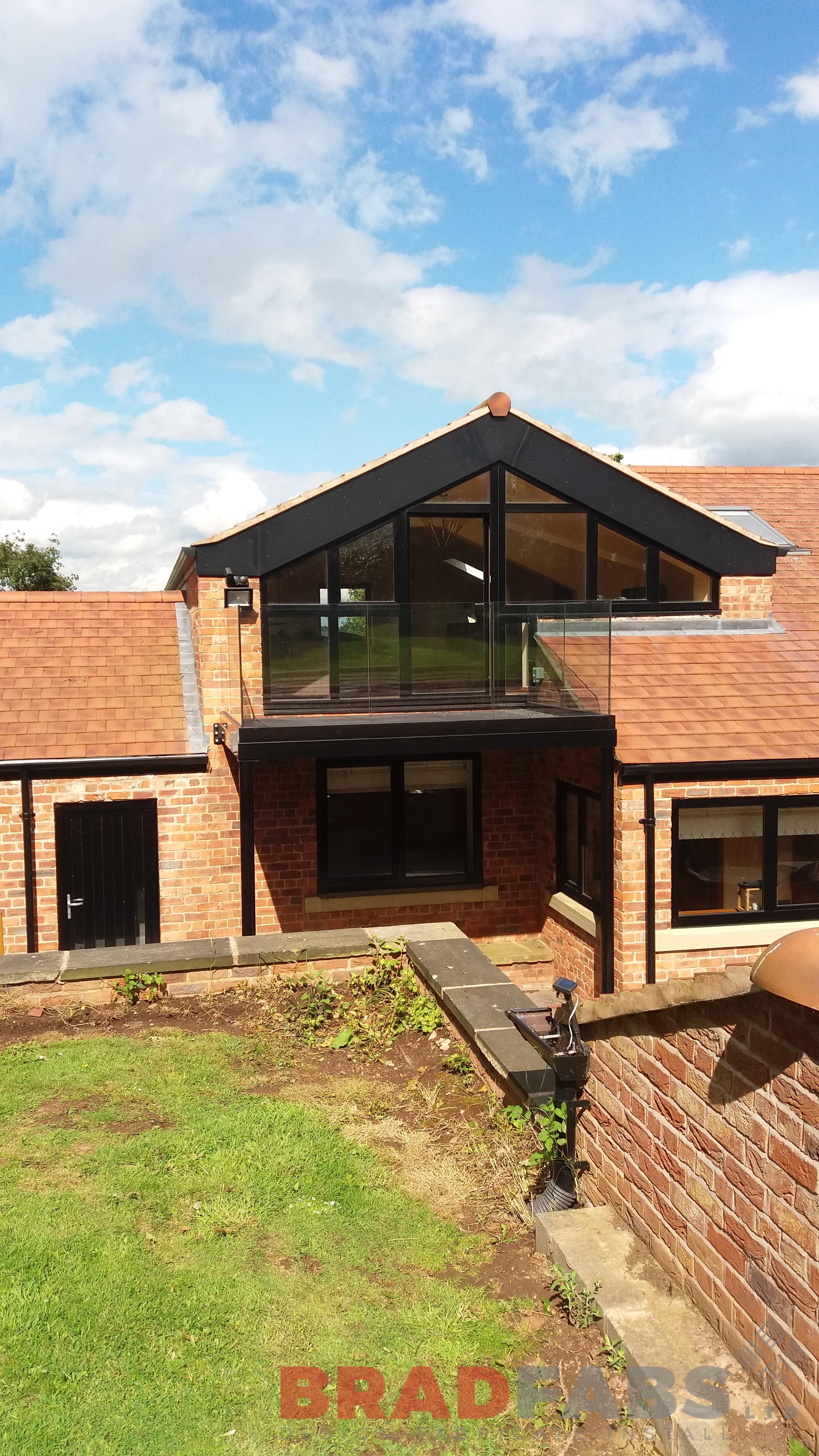 This modern balcony was manufactured in mild steel, galvanised and powder coated to match the customers windows and doors. The customer choose the new channel system glass balustrade and had it powder coated again to match the frame work.