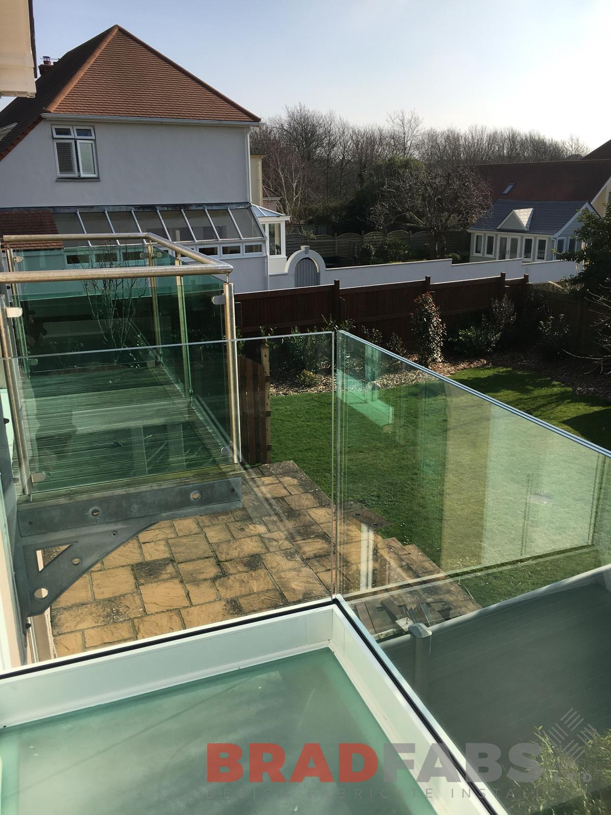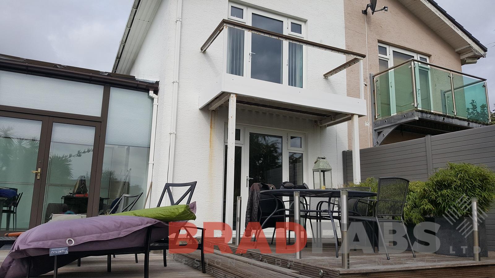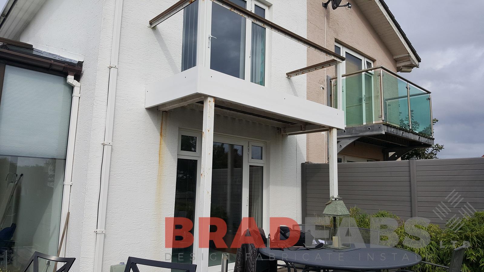 Bradfabs recently installed this replacement balcony in St Brelade. The old balcony had become dated and rusty, we design, manufactured and installed this balcony in mild steel, galvanised and powder coated frame with channel system balustrade along with a glass floor.