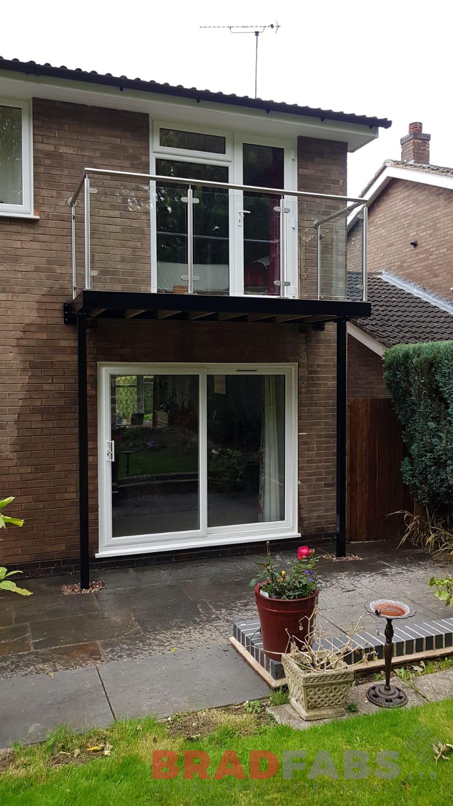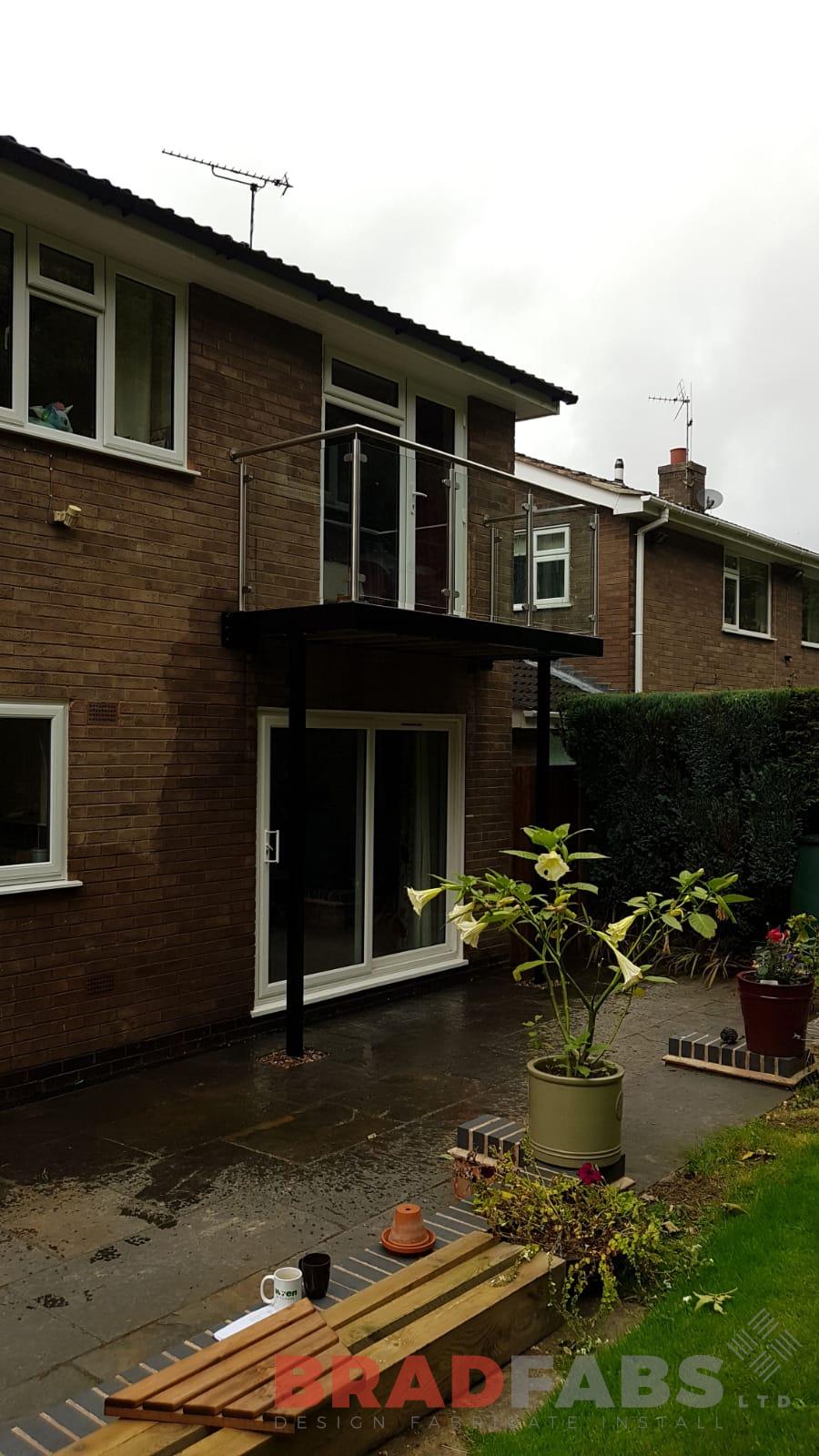 Another balcony finished and completed by Bradfabs, this balcony was in mild steel, galvanised and powder coated framework with stainless steel balustrade and toughened safety glass. The flooring was composite decked floor