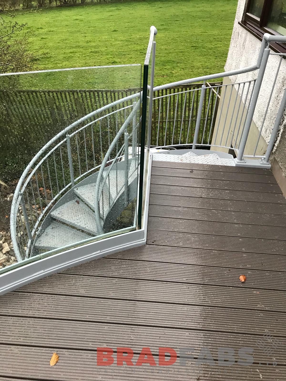 Our customer wanted a feature balcony with a helix staircase, they certainly got this. It feature a balcony approximately 22 metres squared, with curved infinity laminated glass balustrade and circular posts, the flooring is ecodek with a helix staircase. This project makes the most of the stunning views and adds to the house.