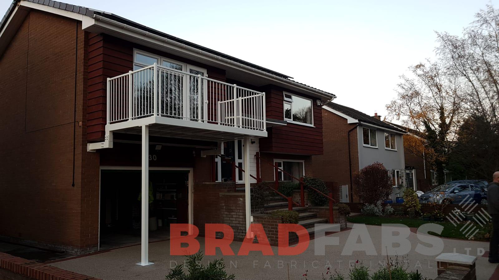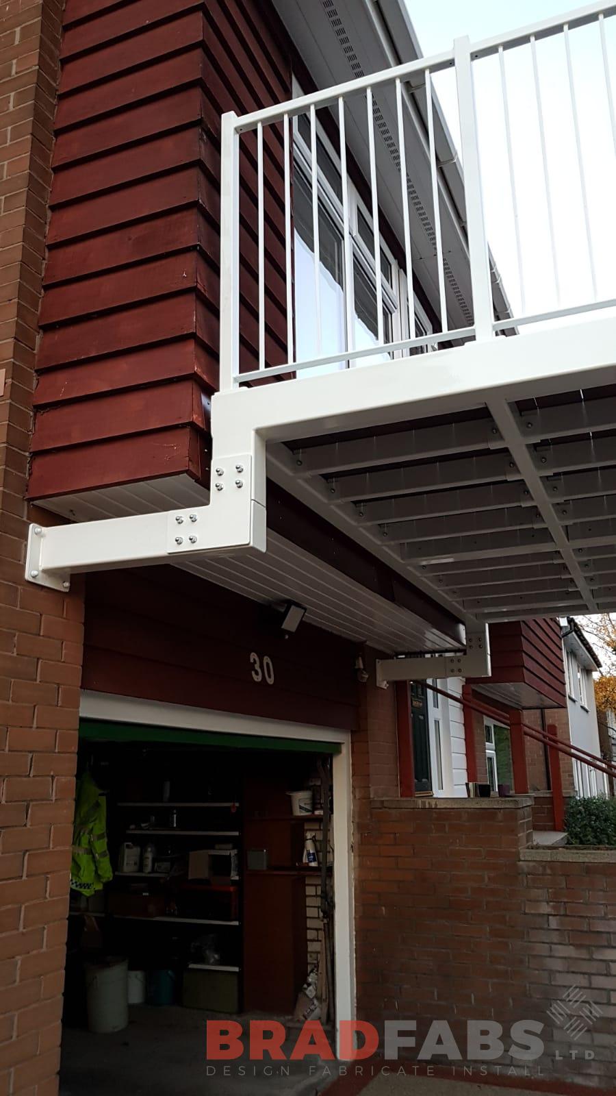 This balcony makes a beautiful addition to this home. Built in mild steel, with a galvanised finish to protect against all weather conditions and powder coated white with vertical bar balustrade.