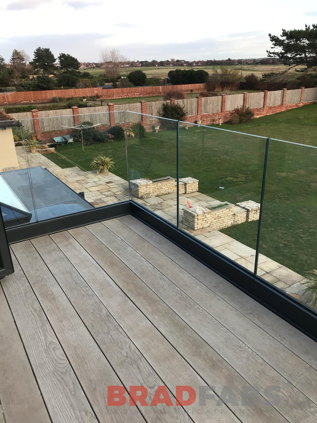 Bespoke stunning modern balcony makes the perfect addition to this house. Our customer opted for infinity glass balustrade with millboard decked floor, meaning our customer can make the most of the gorgeous view