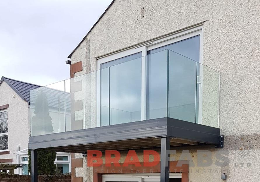 A beautiful infinity glass balustrade balcony means this customer can sit out and enjoy their spectacular views without any obstruction! Manufactured in mild steel, galvanised and powder coated frame complete with composite decked flooring.