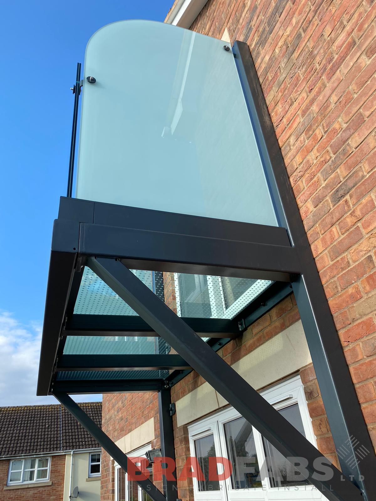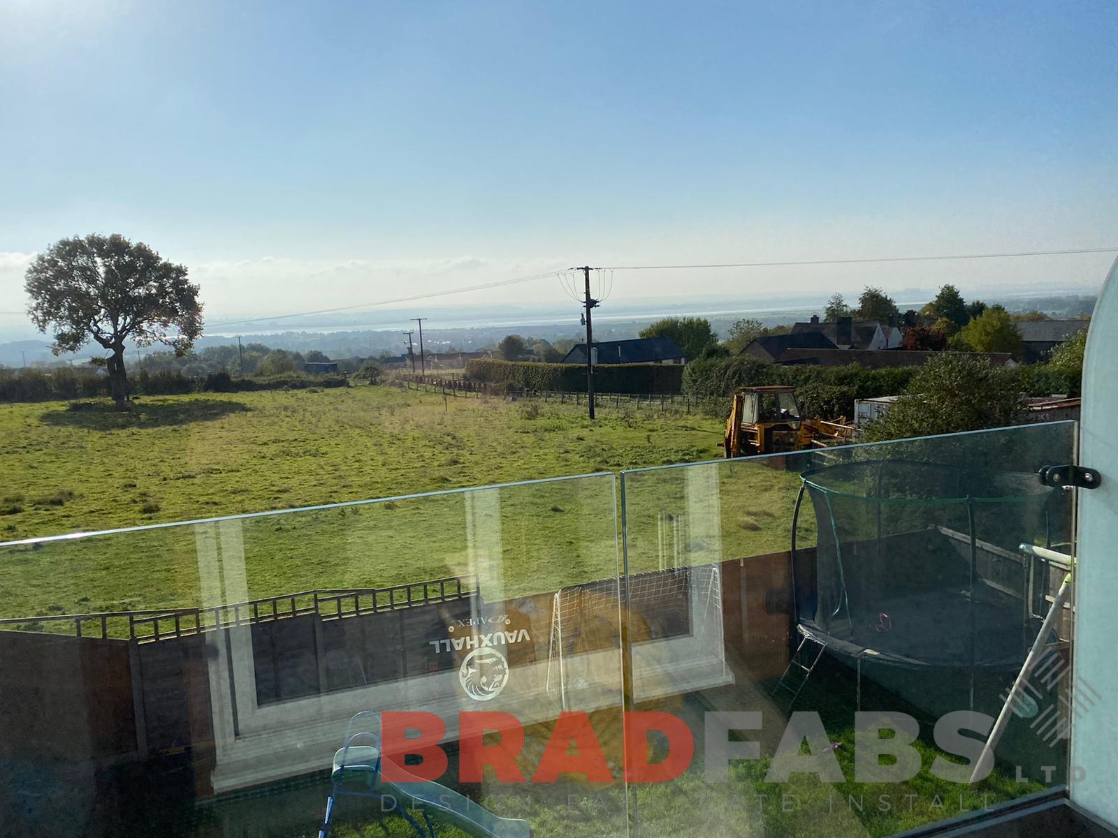Glass floor balcony with privacy screen to either side, and channel system infinity glass