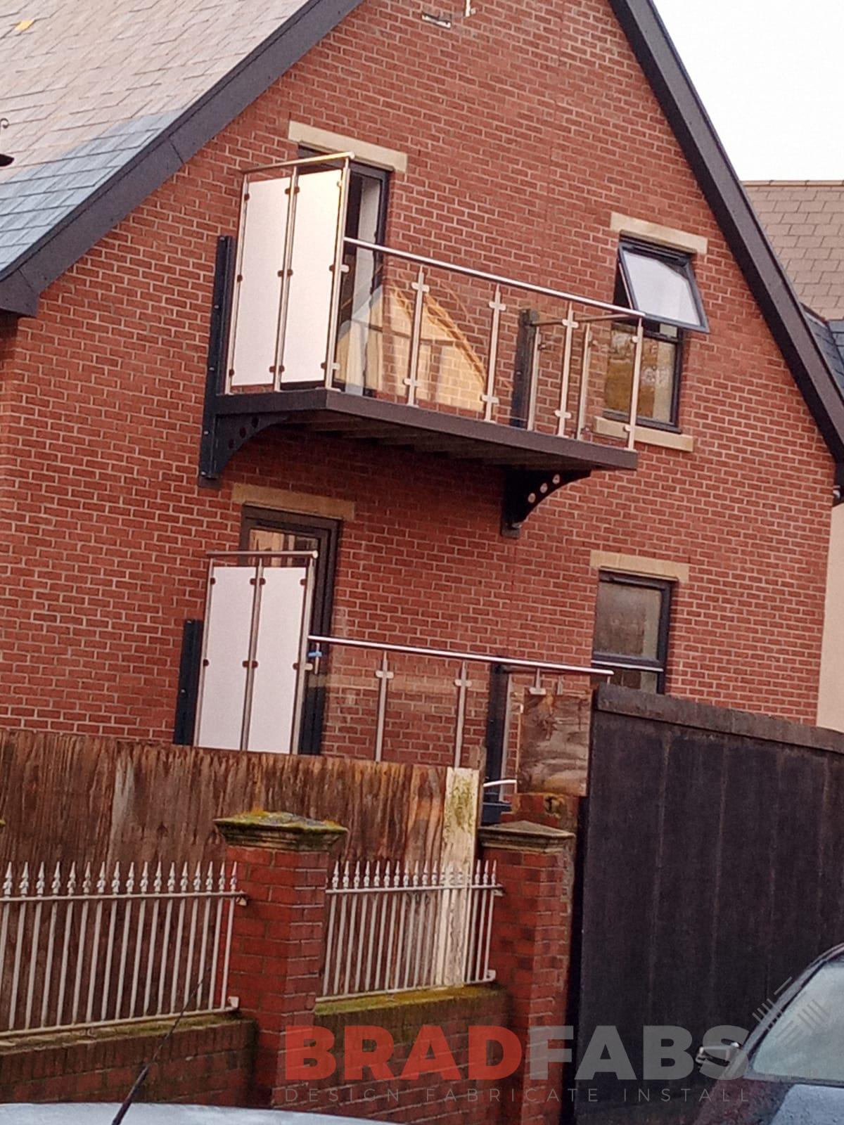 A group of cantilevered balconies we designed, supplied and installed for some flats. Some that required privacy screen if over looking others. All with stainless steel and glass balustrade and complete with composite decked flooring