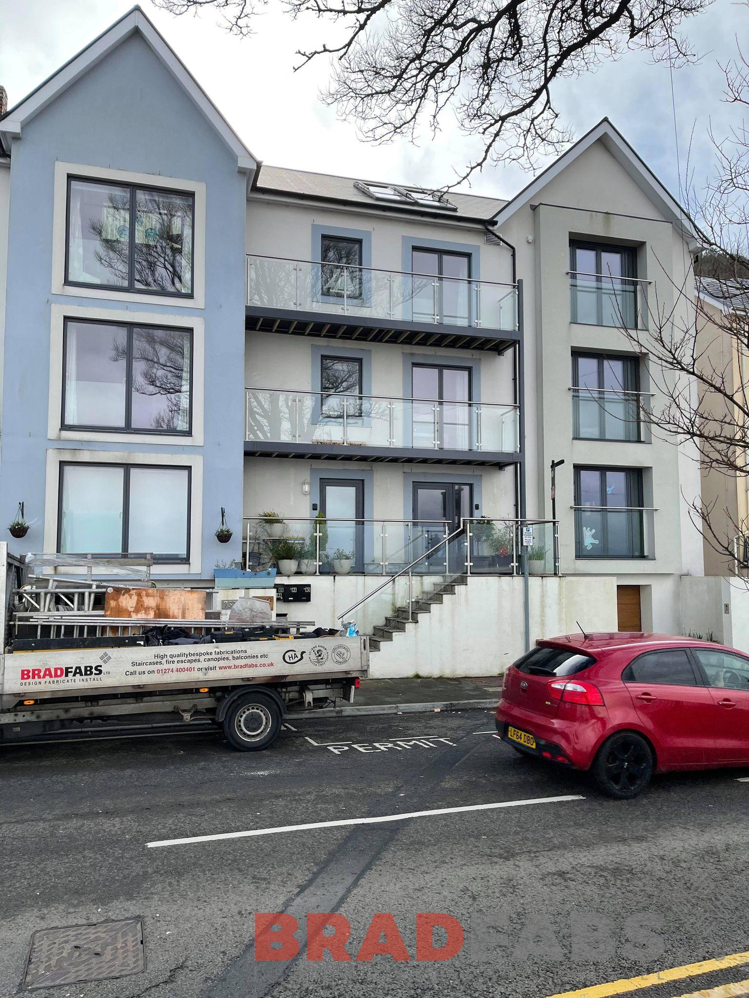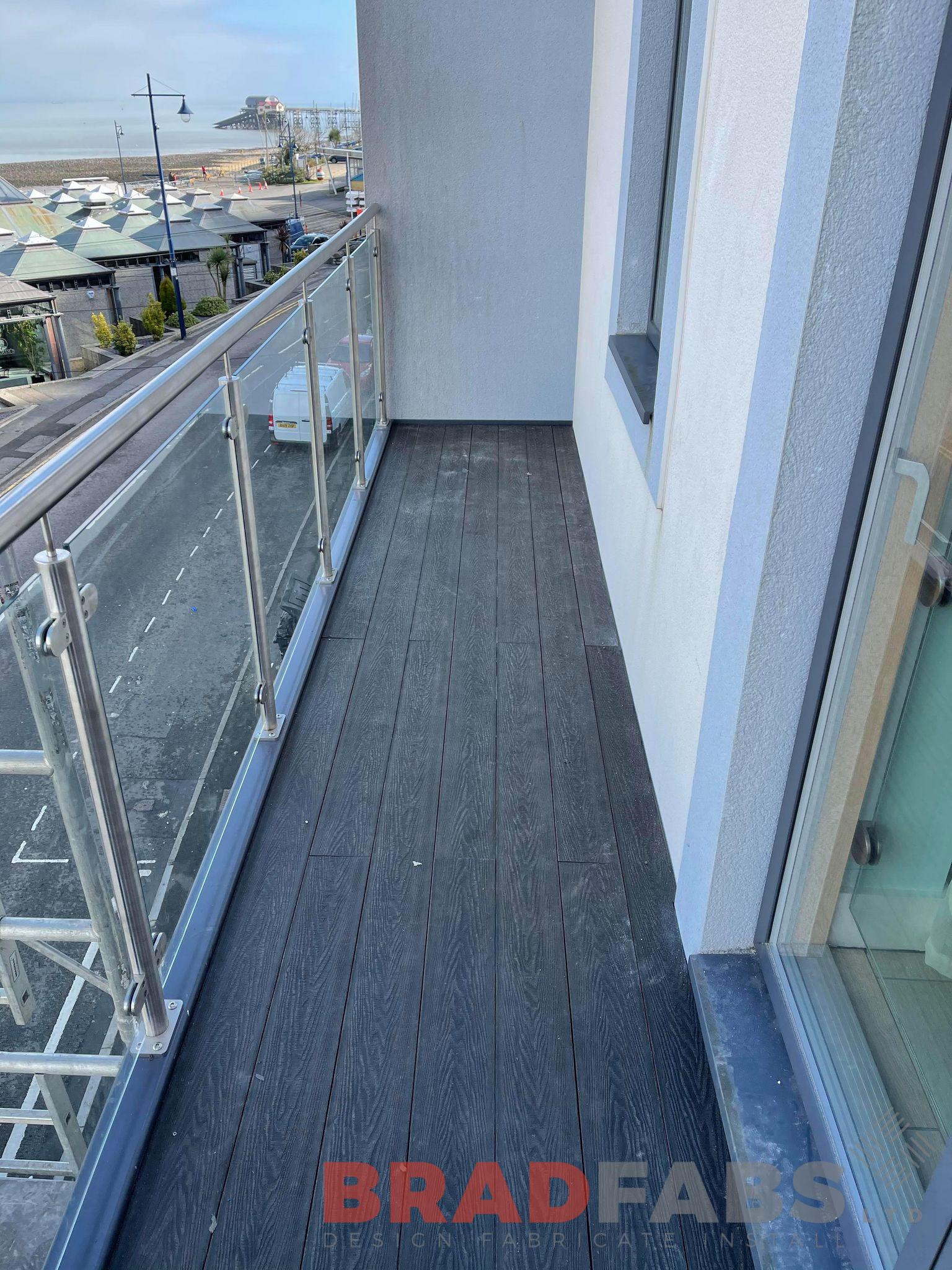Stacked balconies, with stainless steel and glass balustrade, complete with composite decked flooring