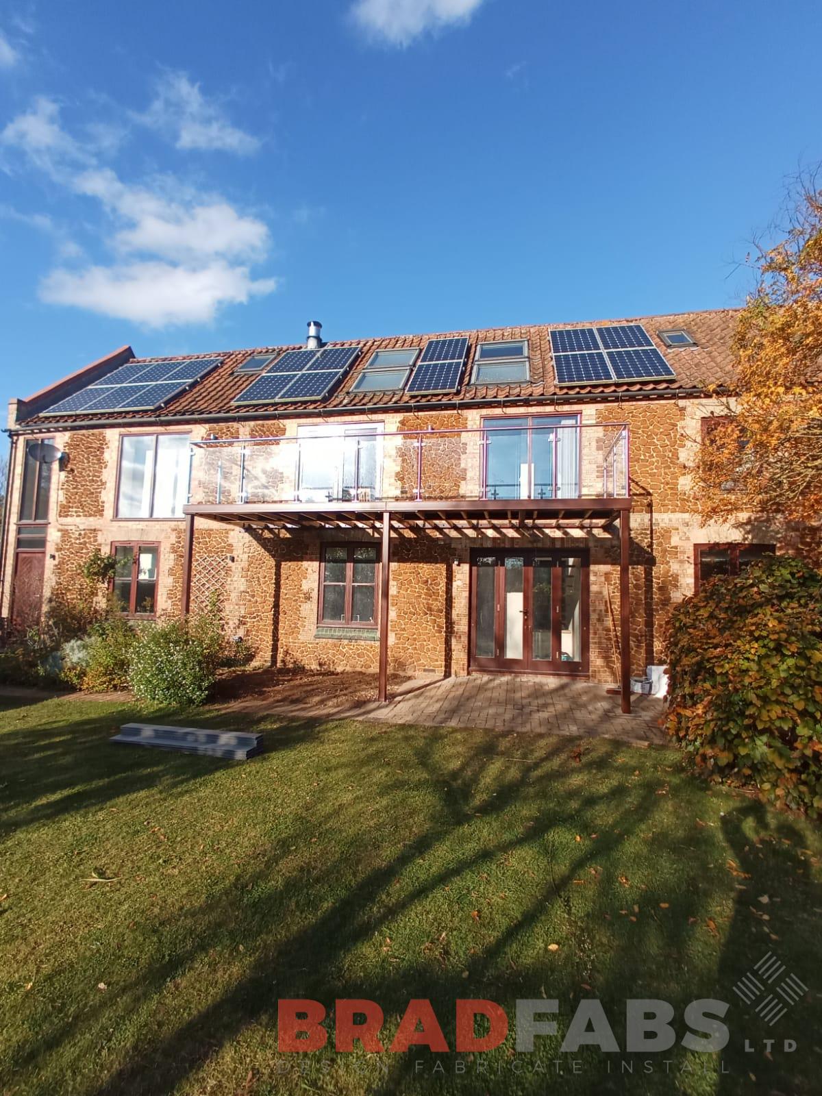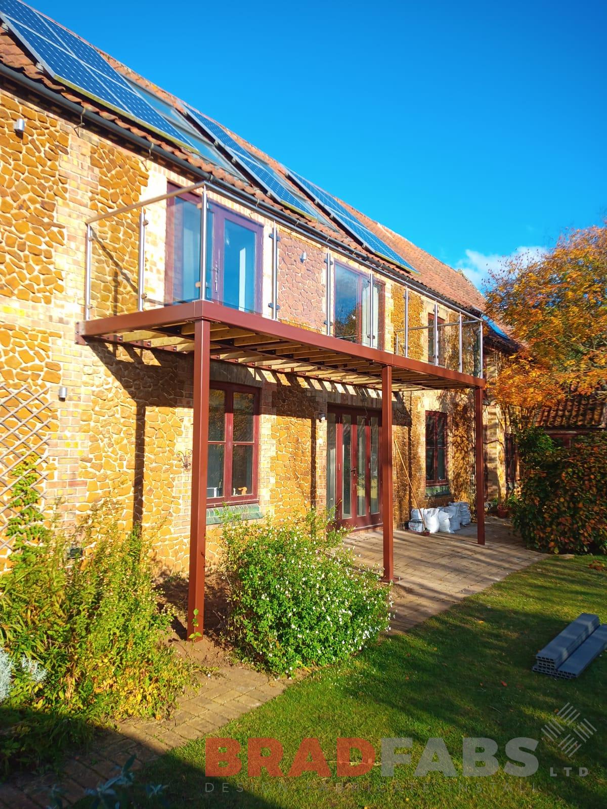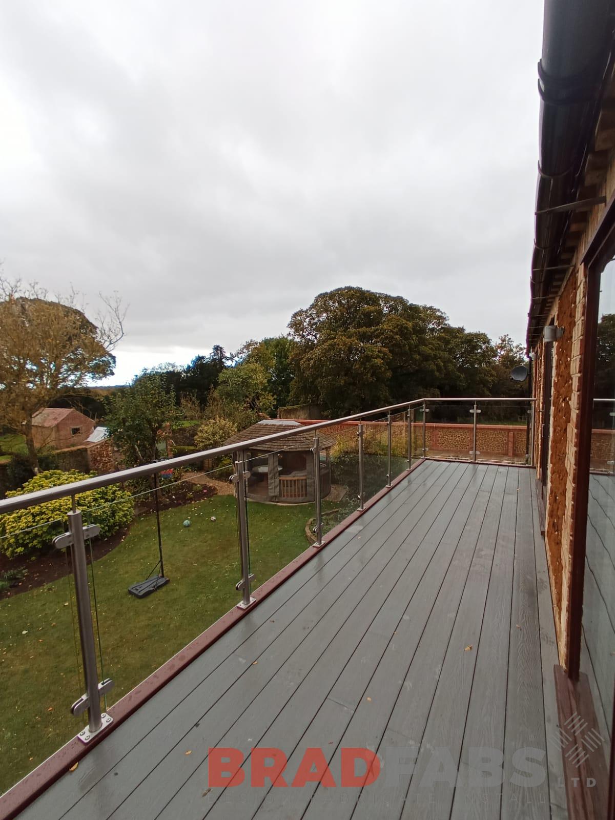 Bespoke mild steel, galvanised and powder coated balcony with stainless steel and glass balustrade, complete with composite decked flooring