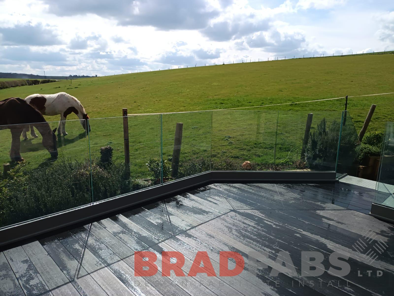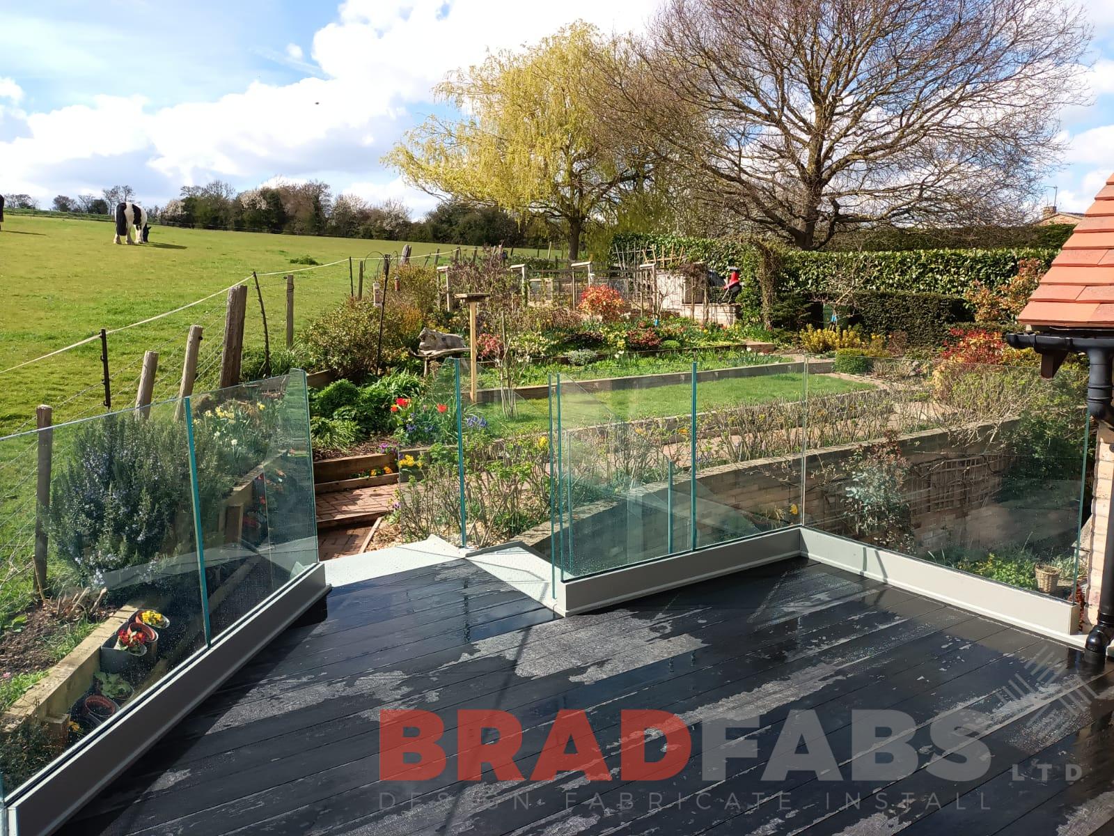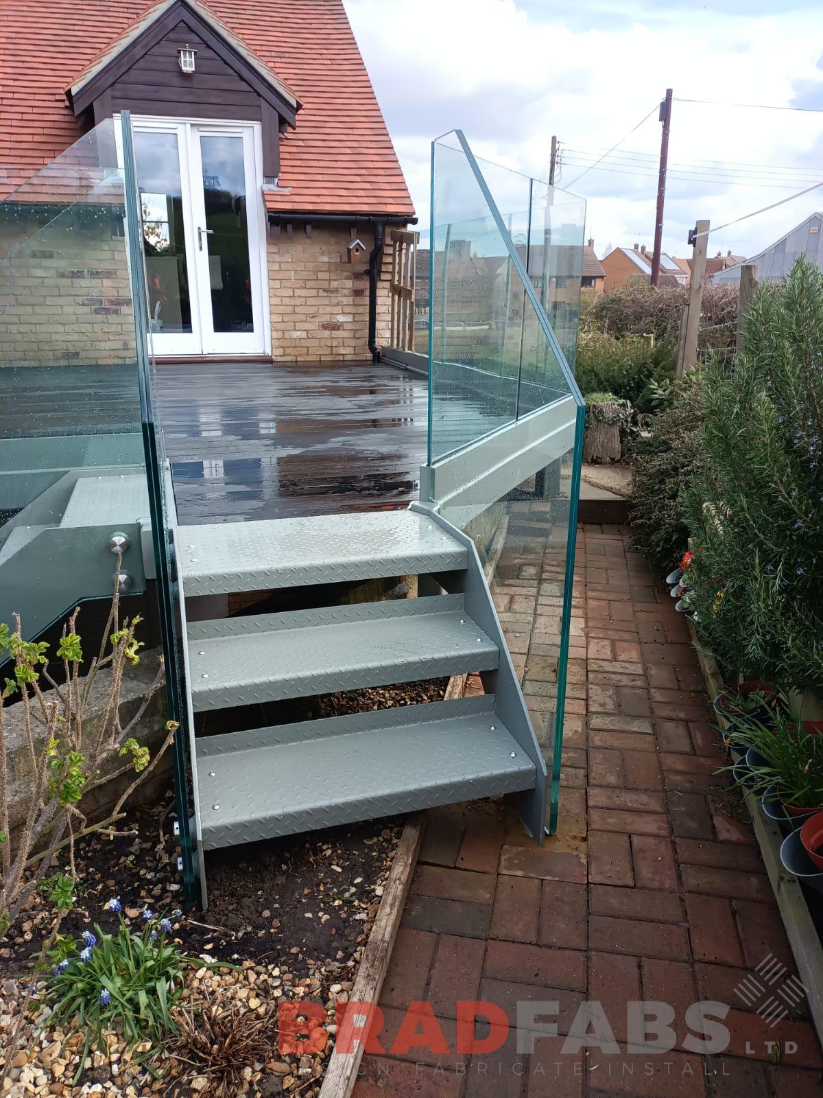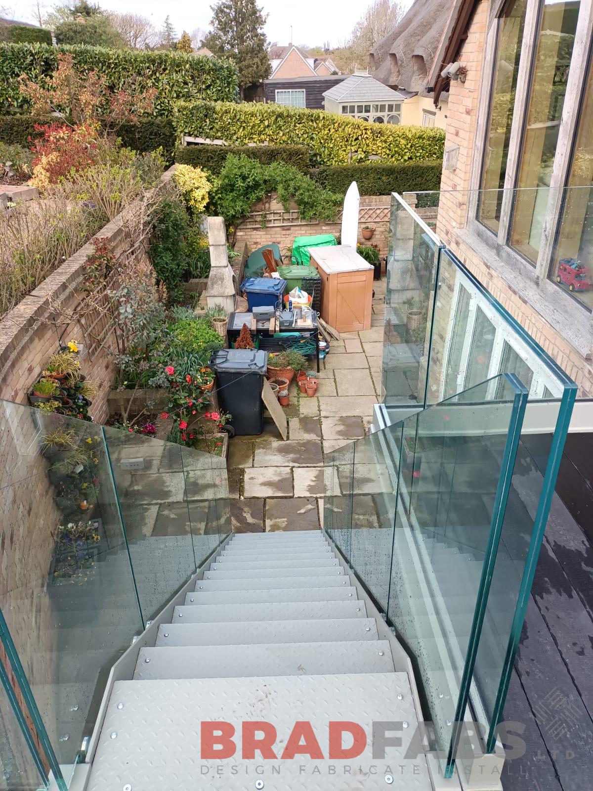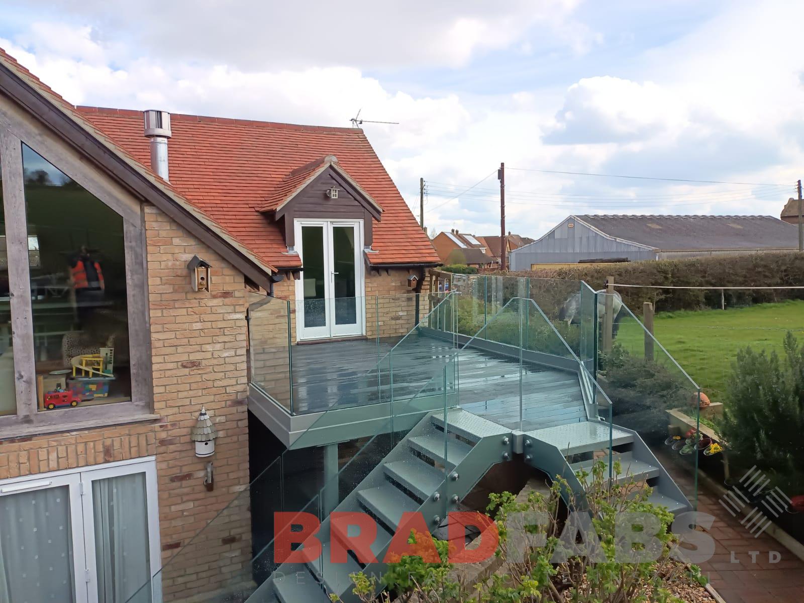 Bespoke Balcony with double staircase, for a domestic property, with channel system infinity glass balustrade for both balcony and staircases. How amazing are their views!!