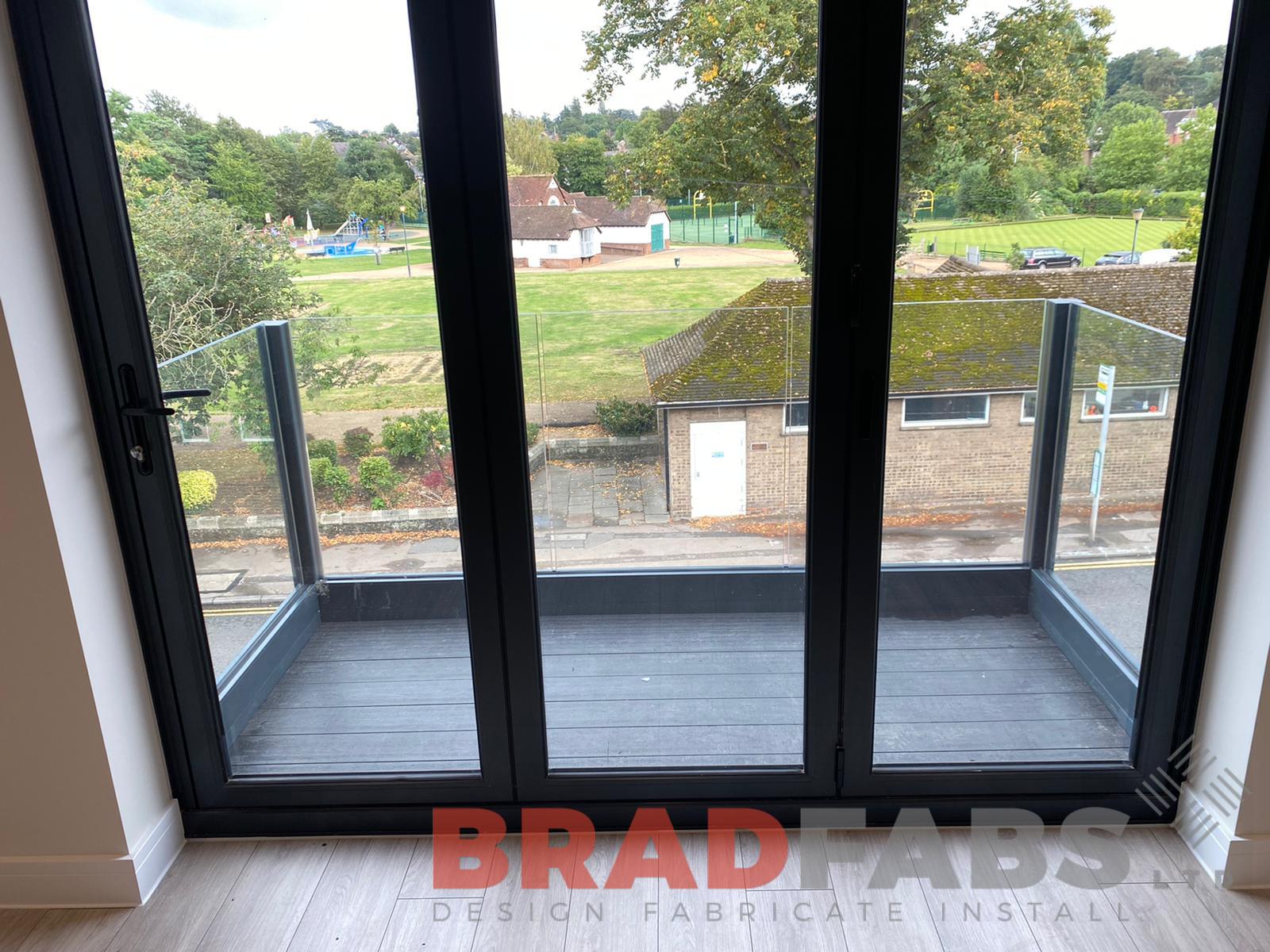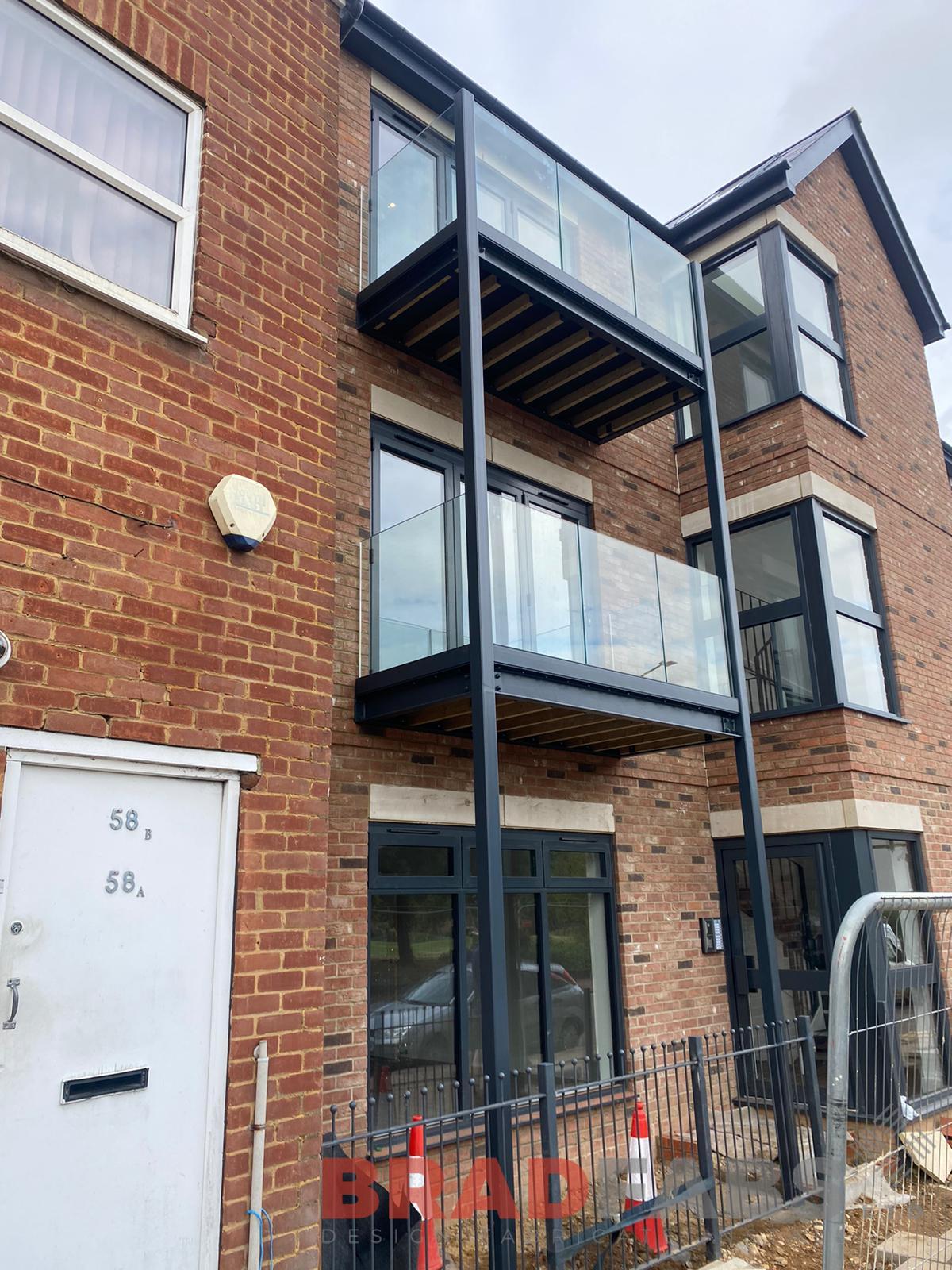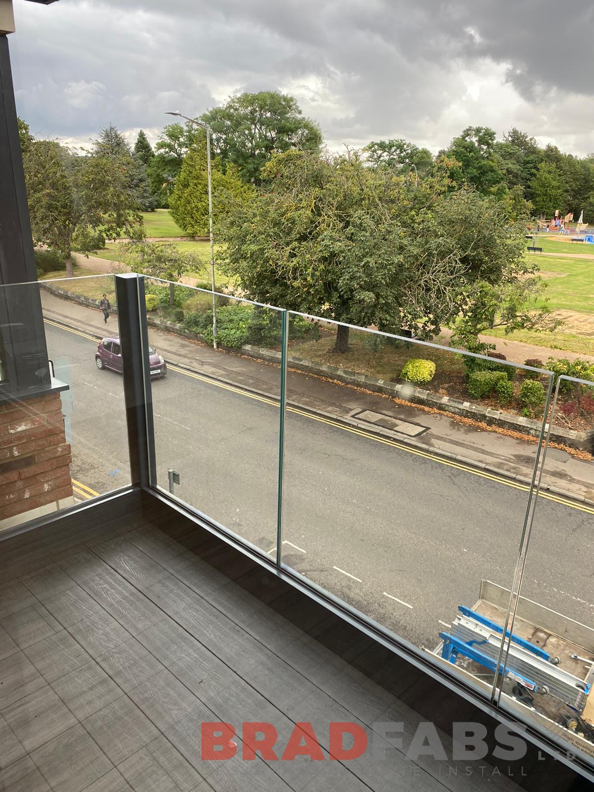 Modern stacked balconies with channel system infinity glass complete with composite decked flooring