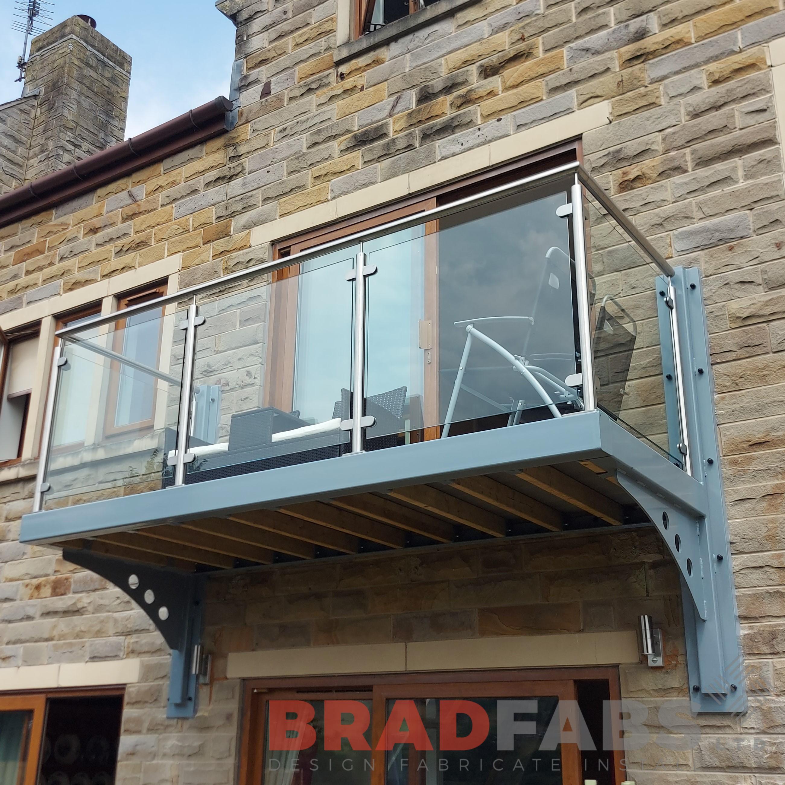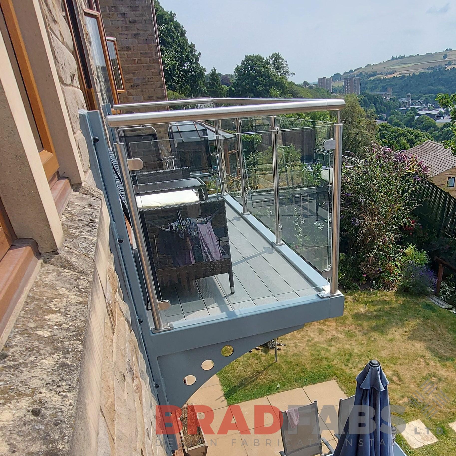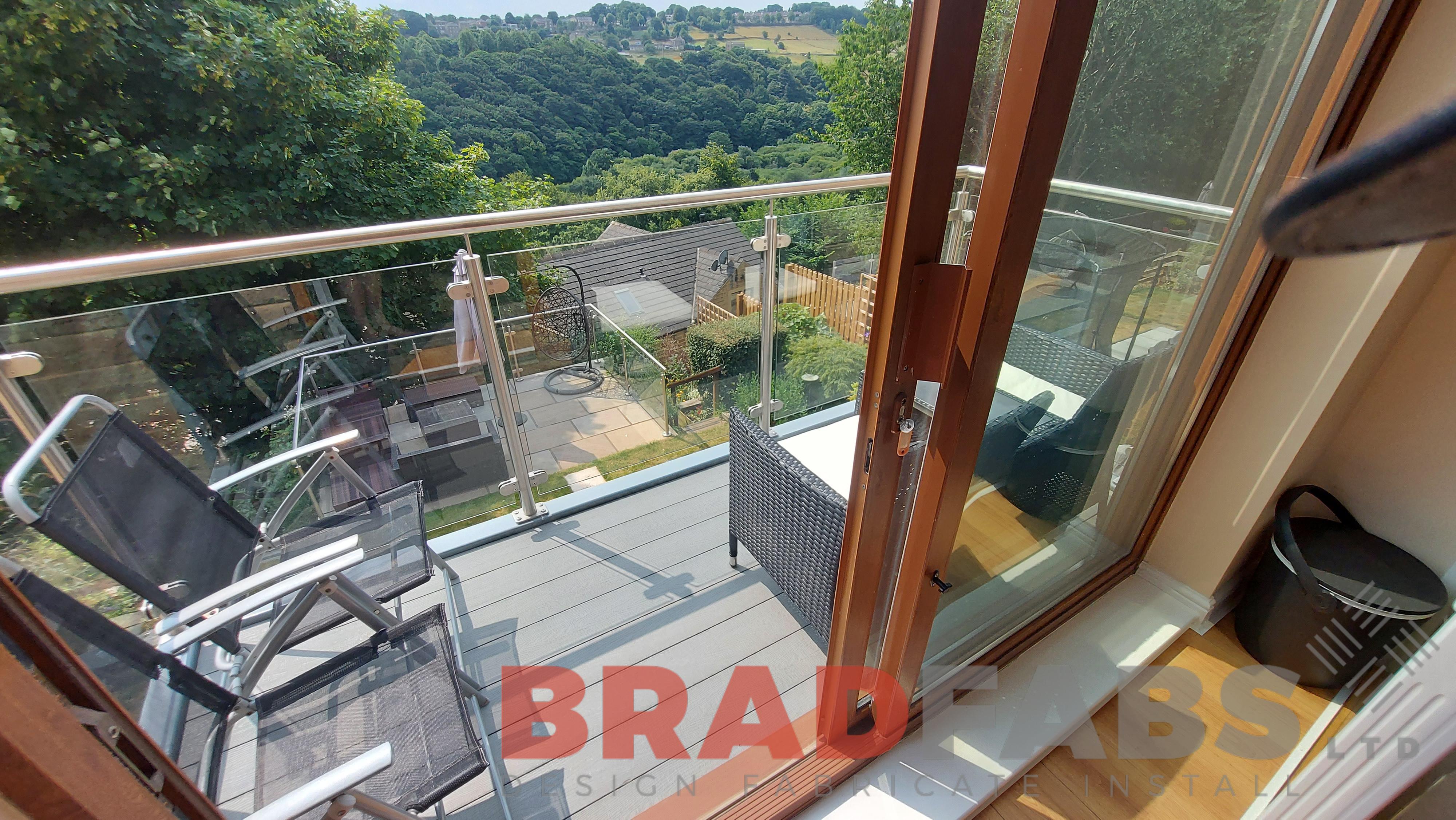 Bespoke cantilevered balcony, with stainless steel and glass balustrade. Complete with composite decked flooring.