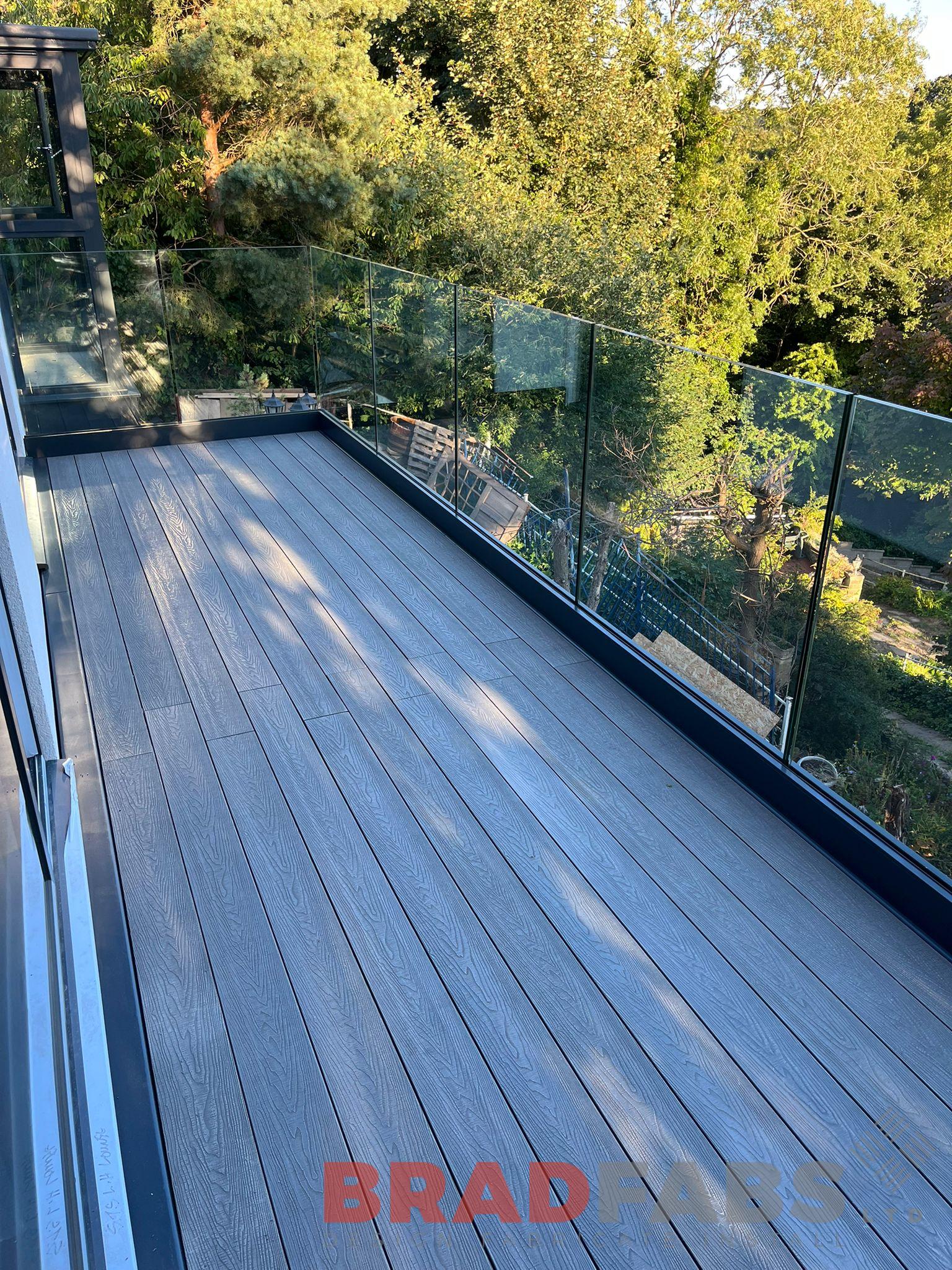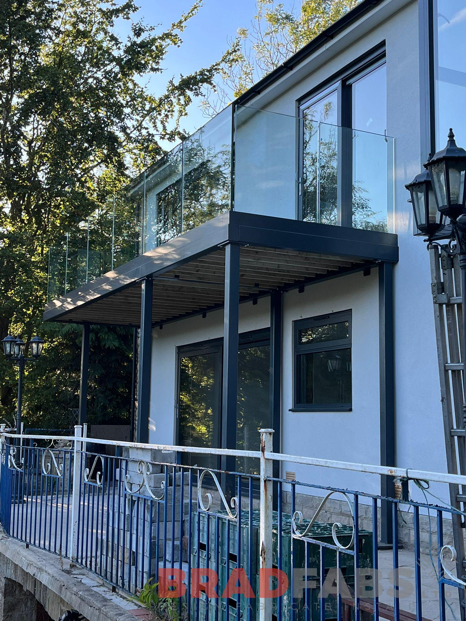 Stunning bespoke balcony with six supporting legs and channel system infinity glass balustrade