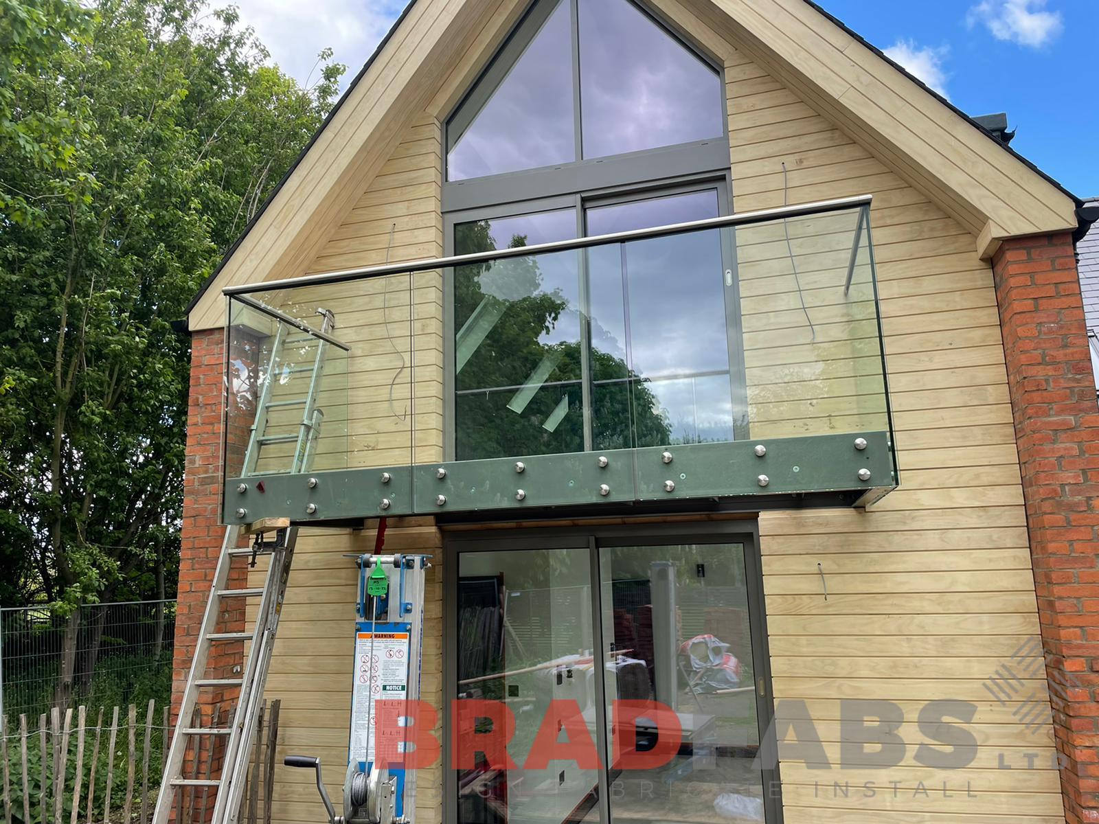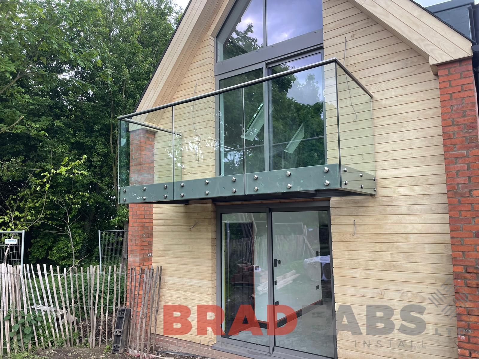 Cantilevered Balcony manufactured in mild steel, galvanised and powder coated with bolt on infinity glass and stainless steel top rail