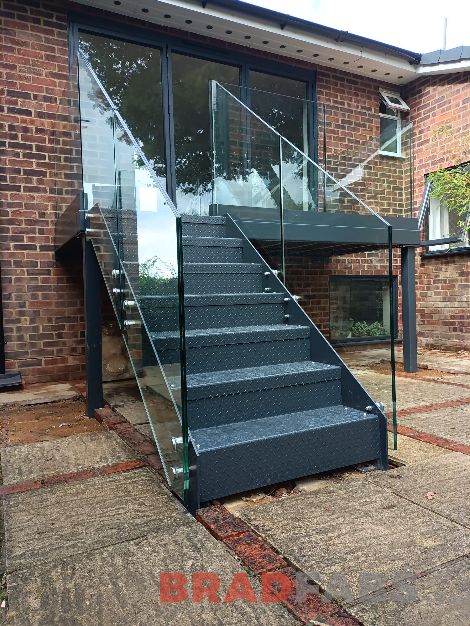 Both with our most popular balustrade design, the channel system infinity glass, but with added privacy screen to the Balcony with supporting legs