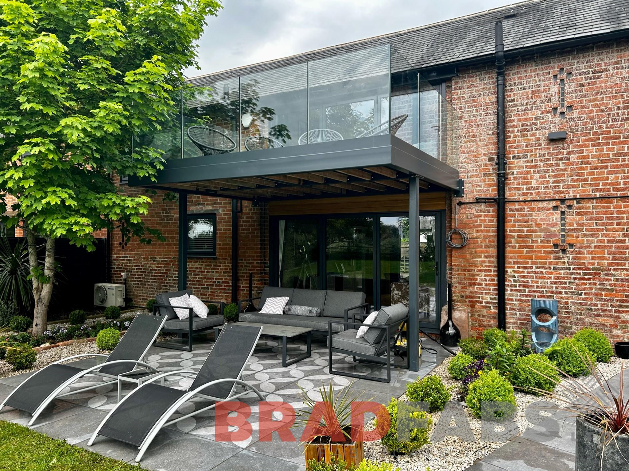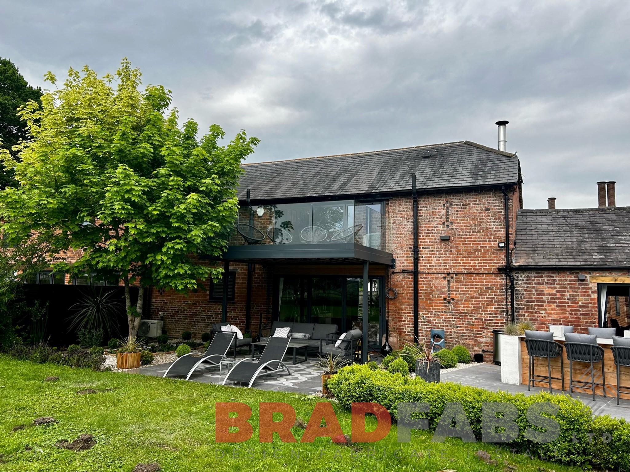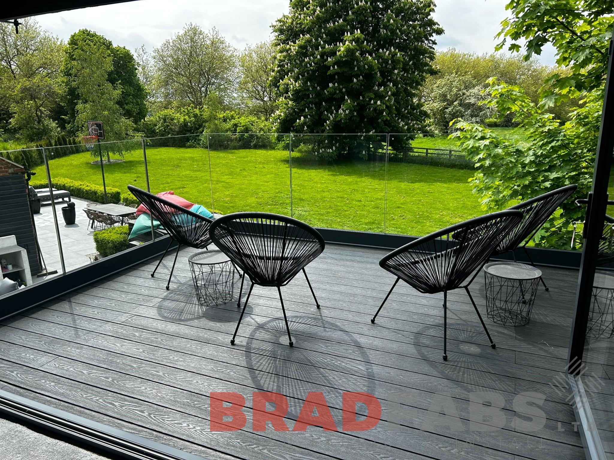 Modern balcony with channel system infinity glass for a domestic property. Designed, supplied and installed by Bradfabs Ltd
