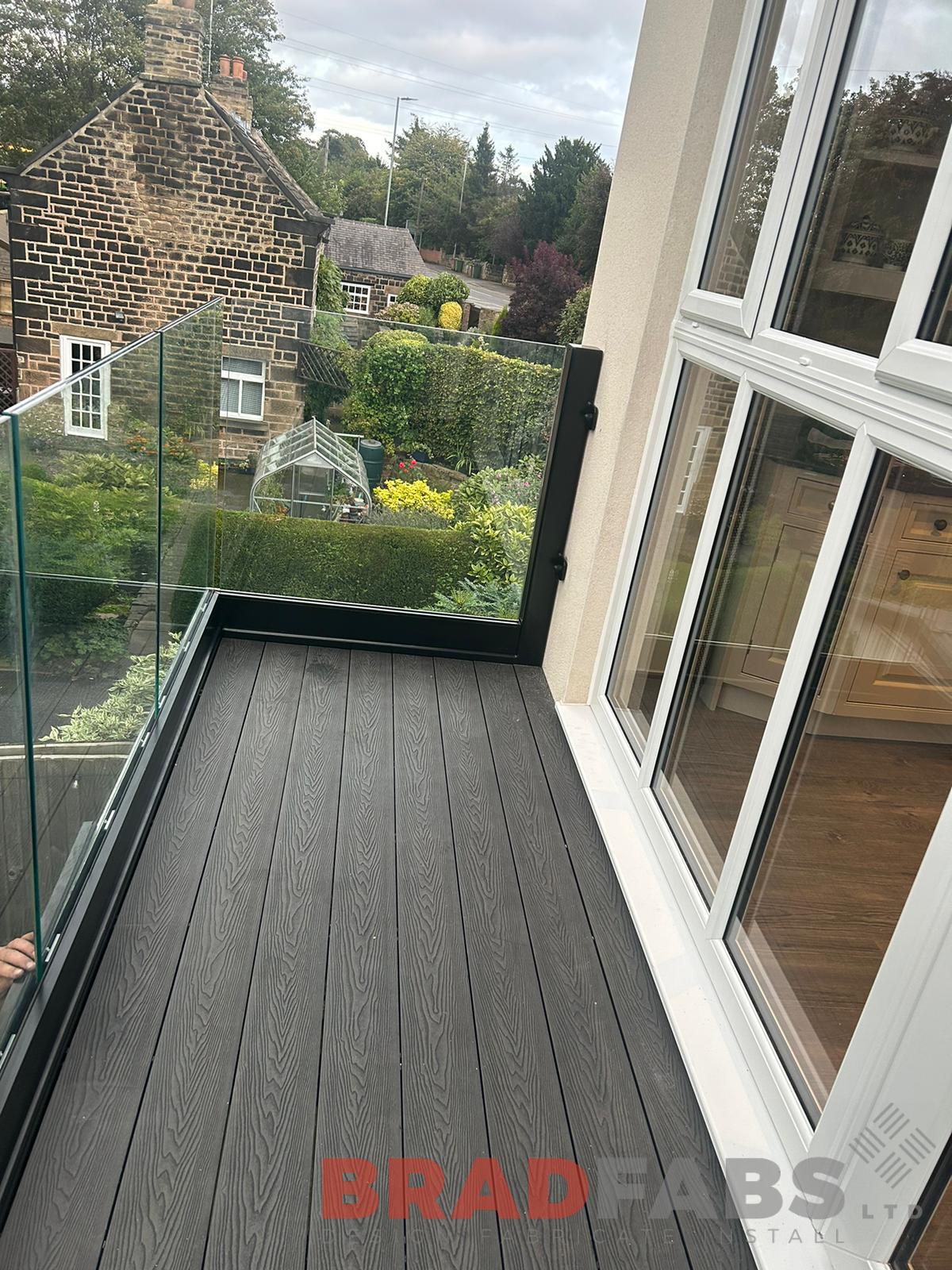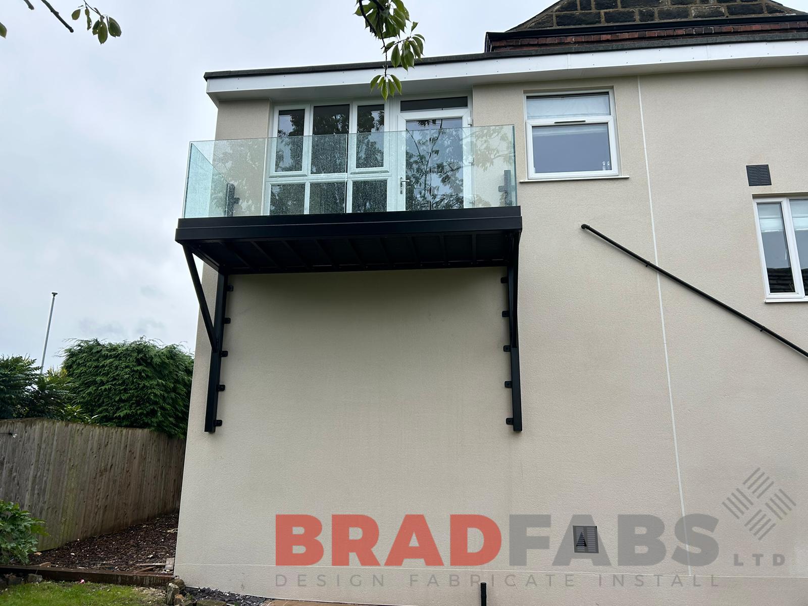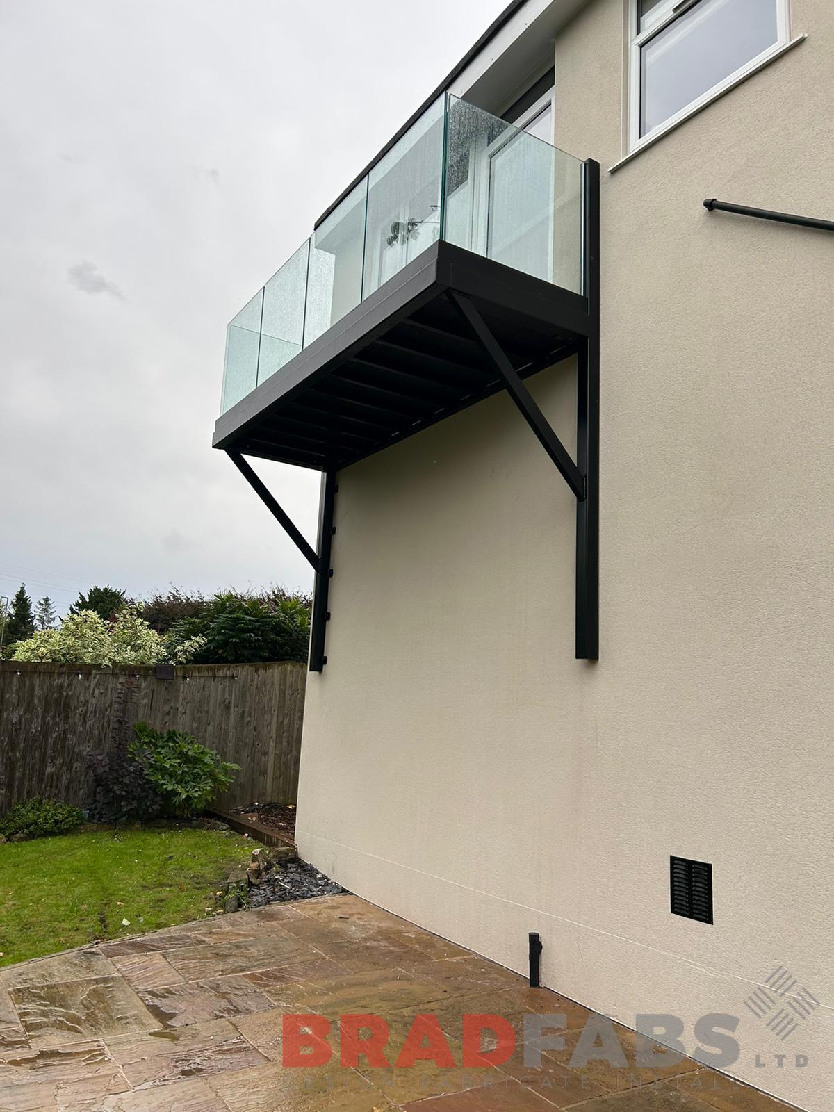 Cantilevered balcony with legs running down the wall. Complete with channel system infinity glass