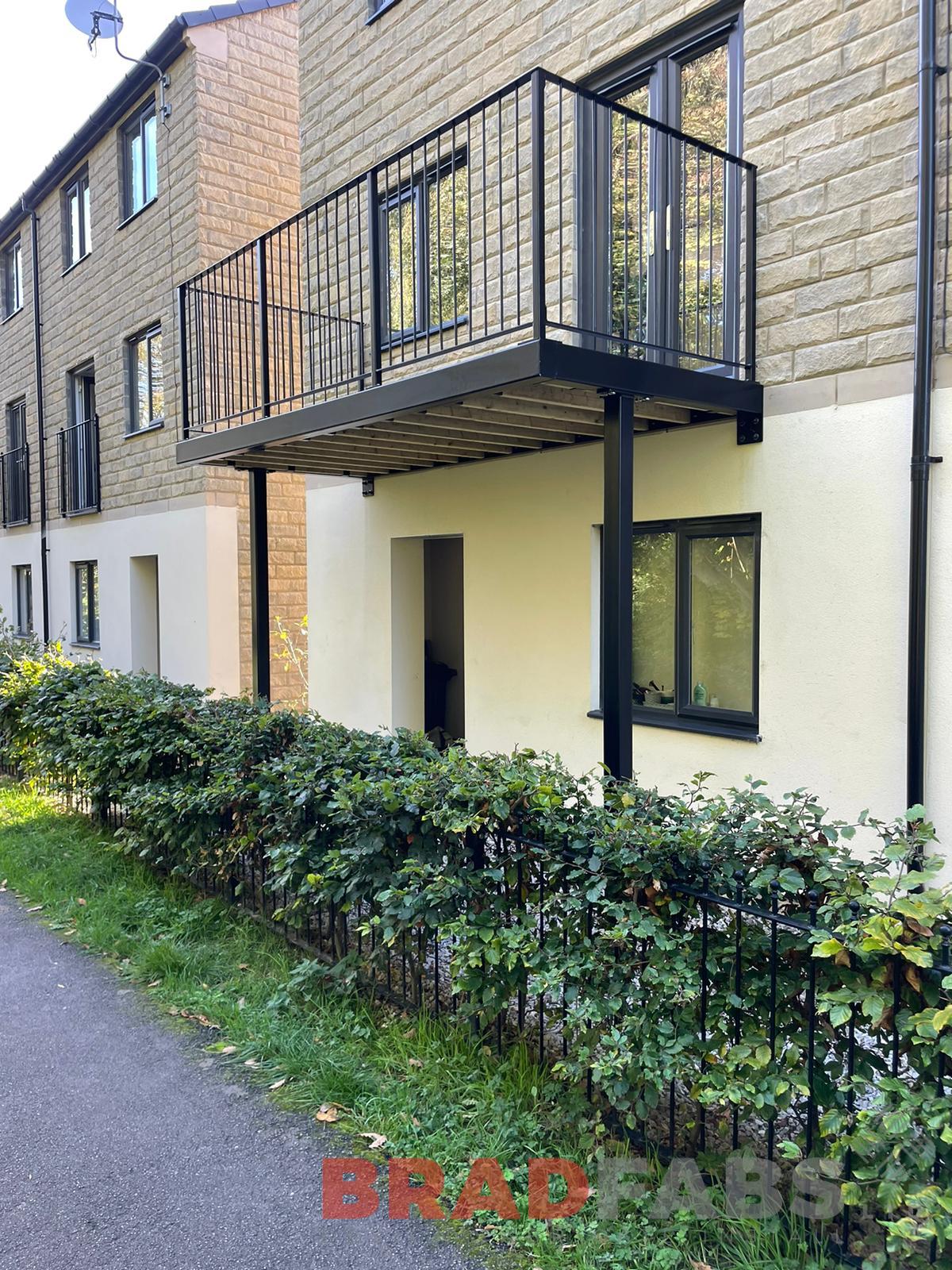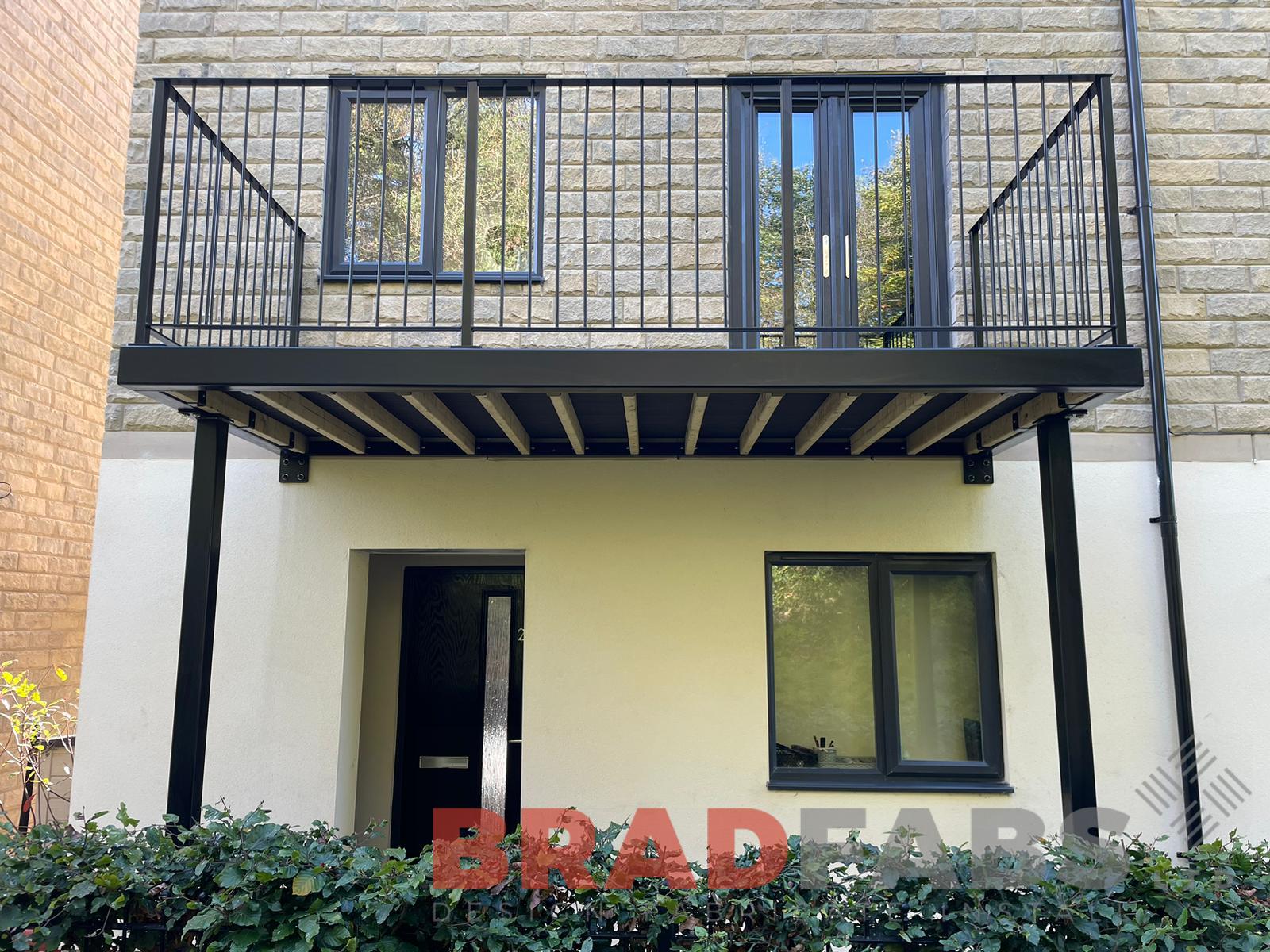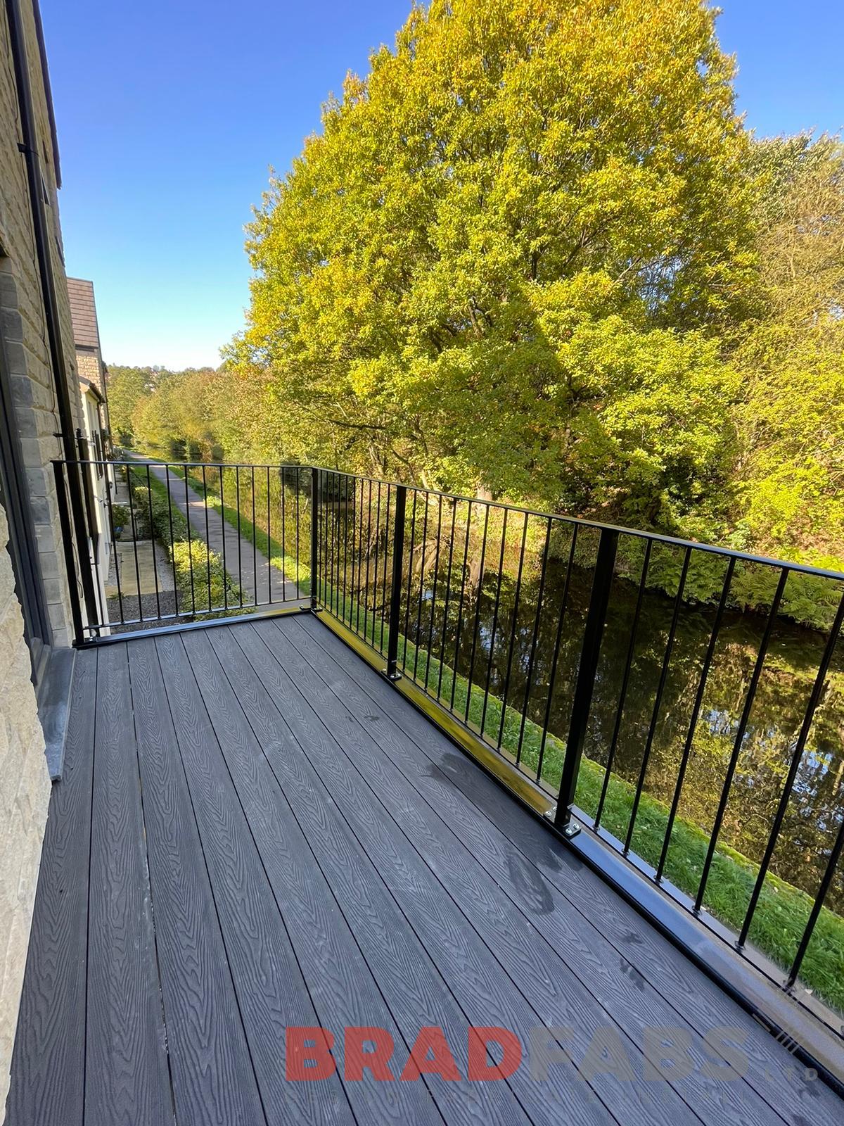 Bespoke balcony with vertical bar balustrade and complete with composite decked flooring