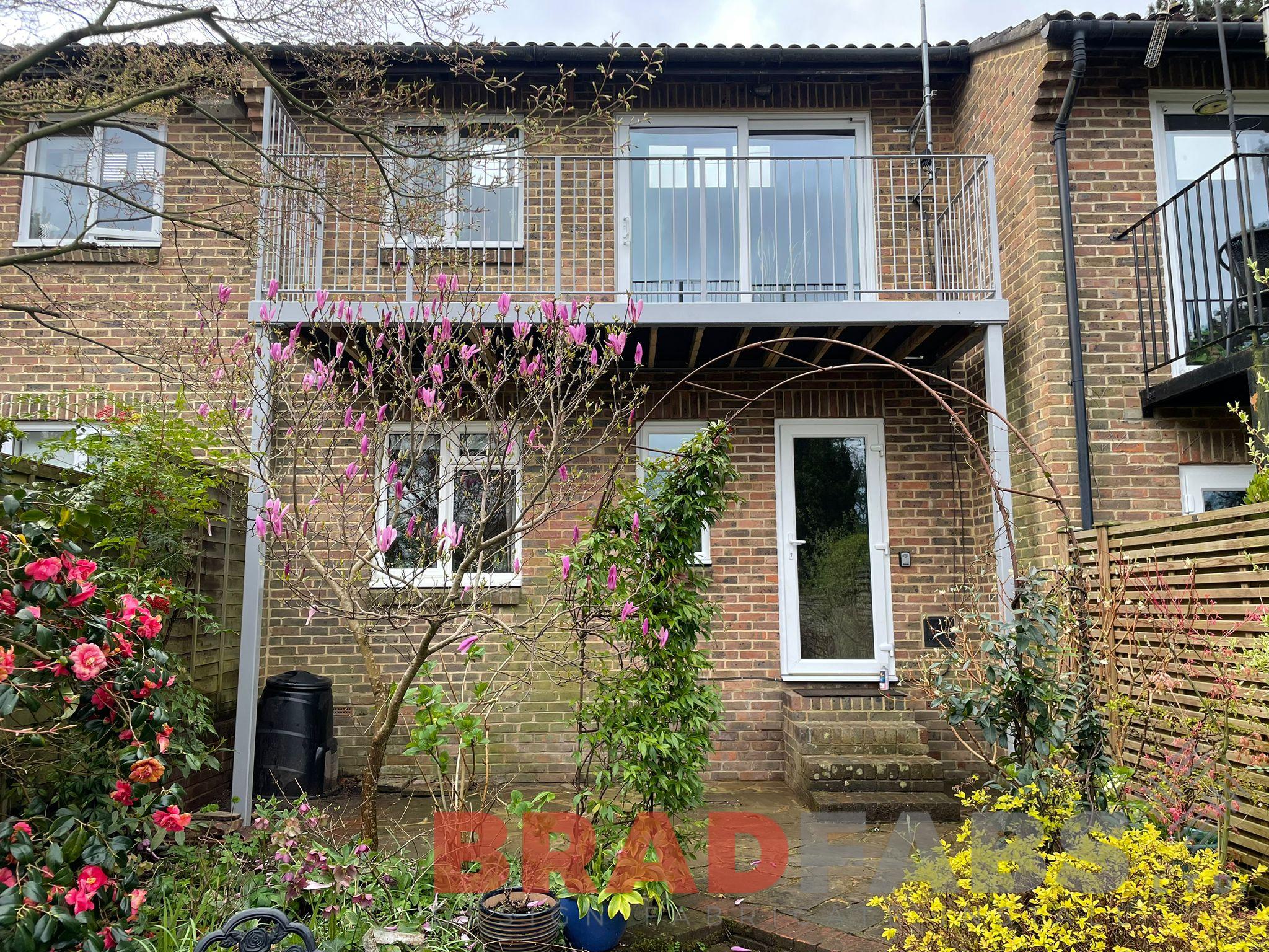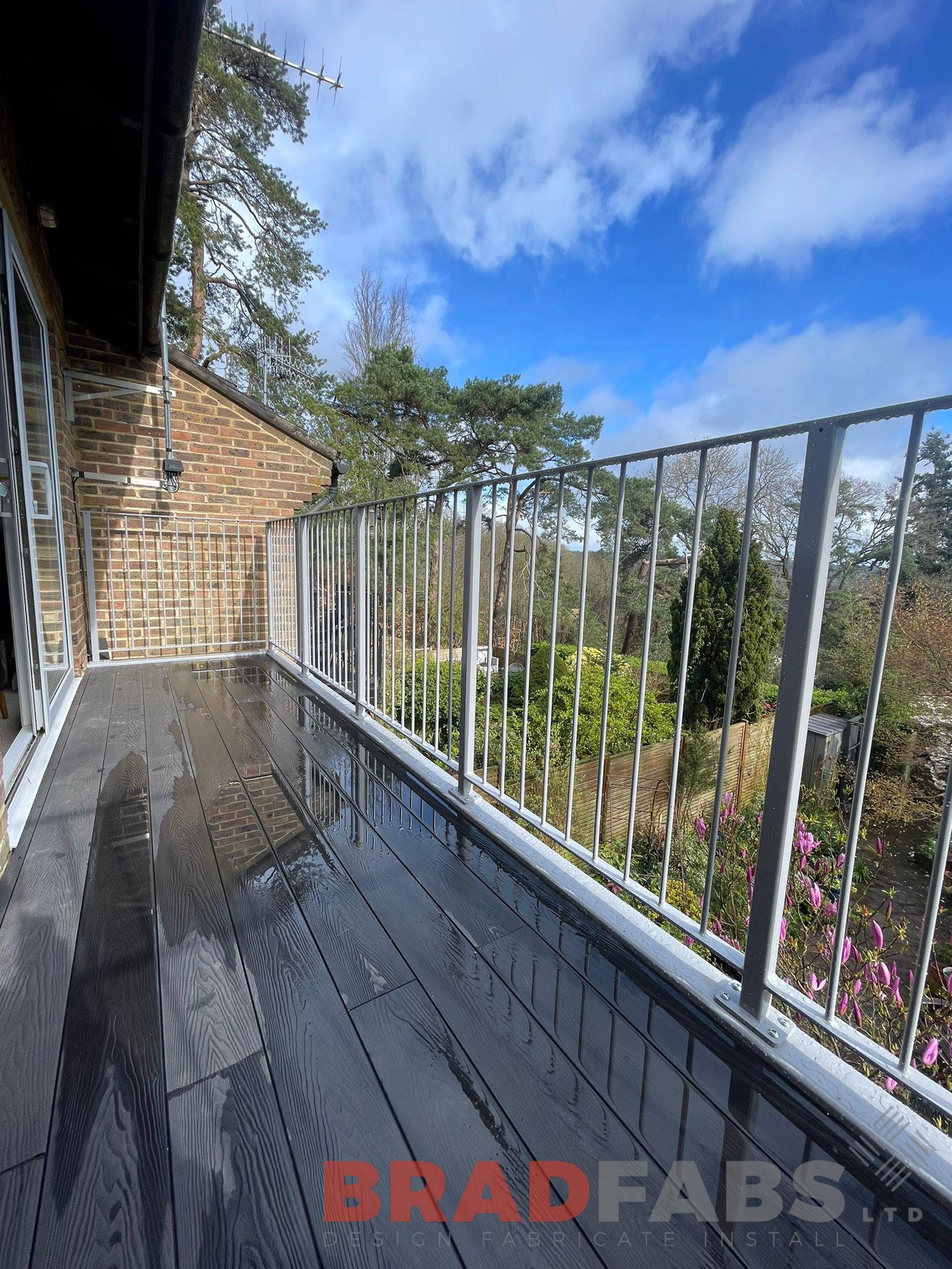 Bespoke steel balcony with vertical bar balustrade. Designed, supplied and installed all by our team of skilled fabricators and fitters.