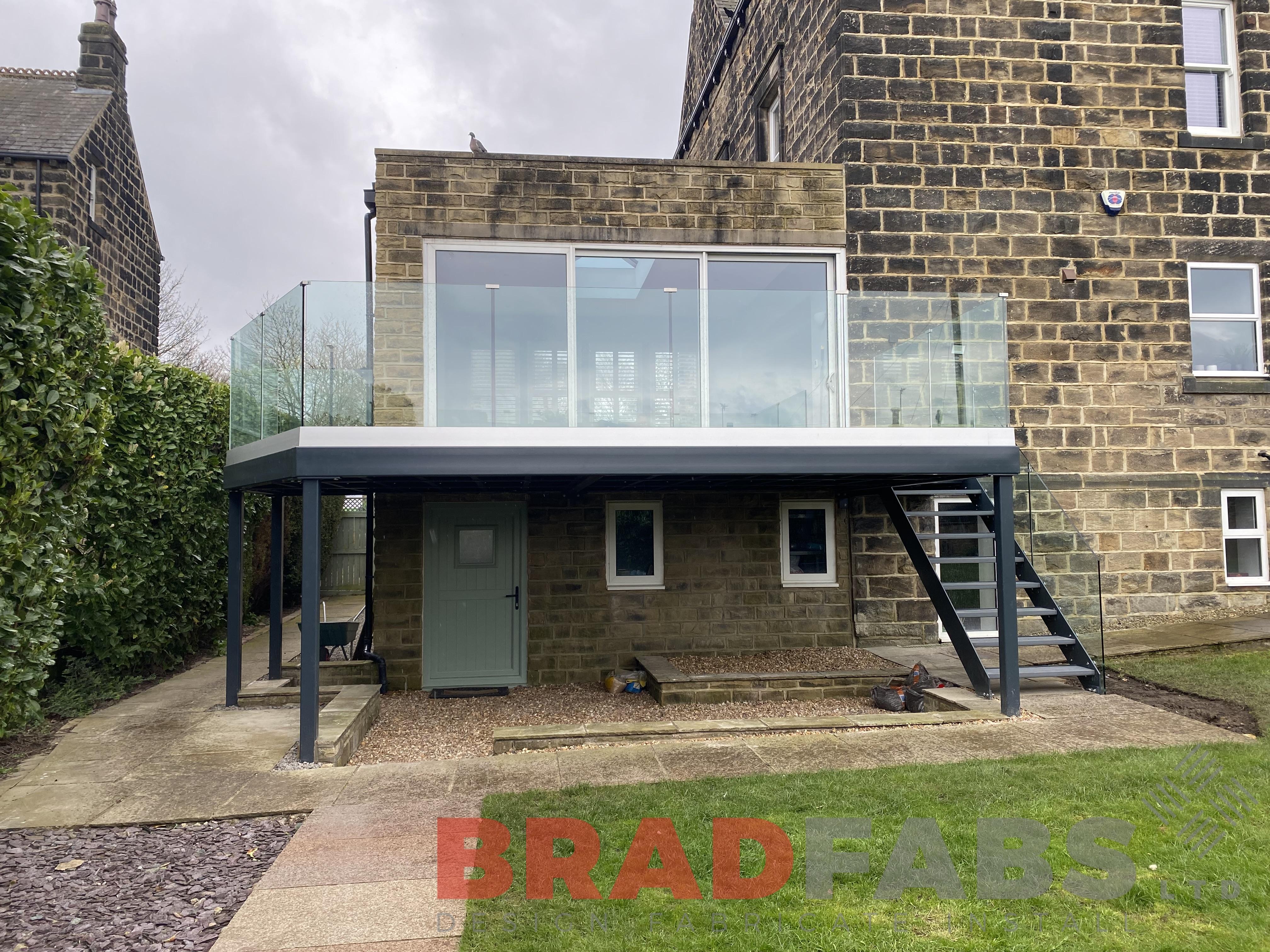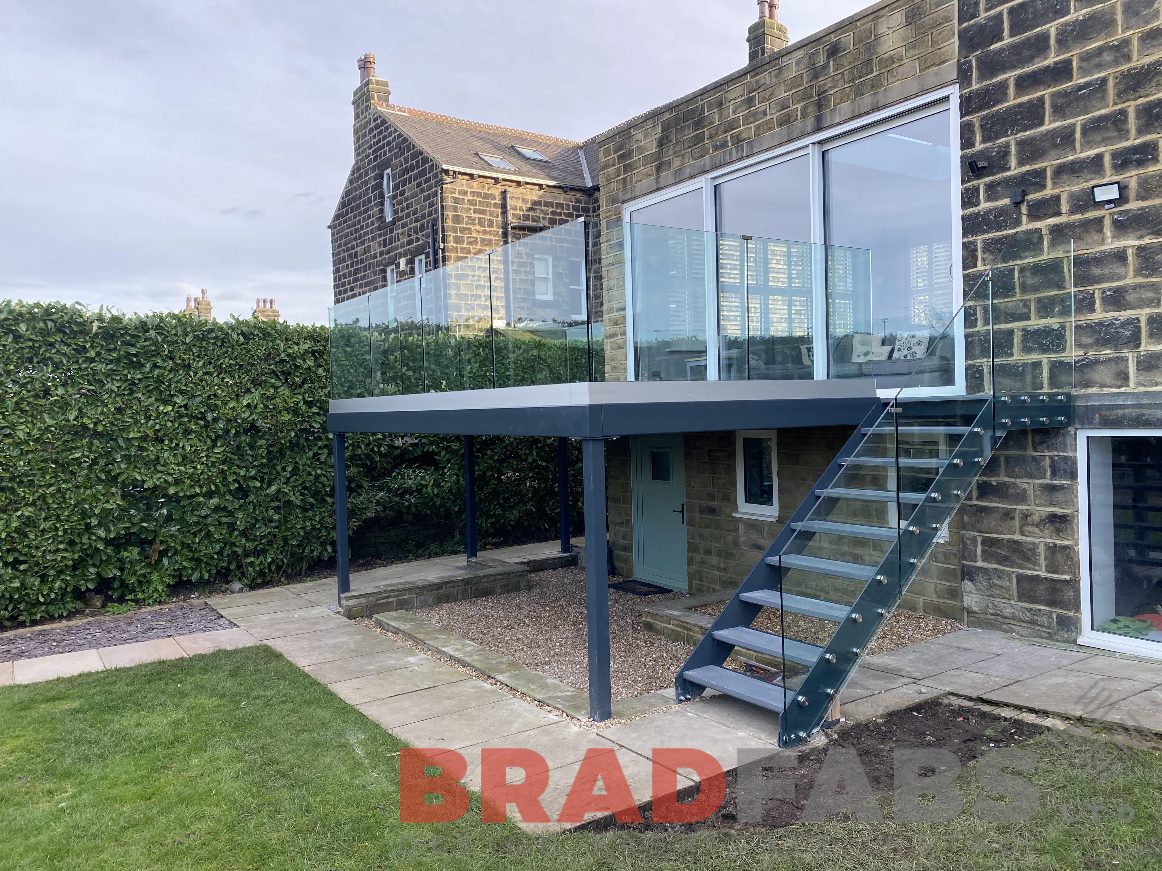 Stunning balcony with straight staircase. This balcony was a supply only balcony from us, designed and supplied by Bradfabs - installed by others!