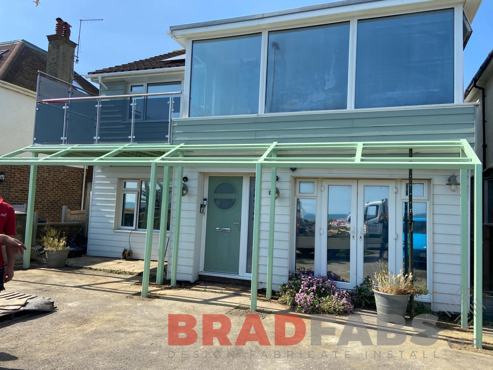 Bespoke steel balcony leading out to a canopy that will accept solar panels.