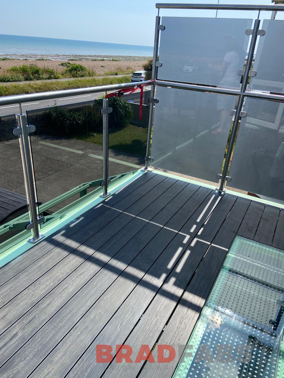 With stainless steel and tinted glass balustrade on the balcony, higher at one side for added privacy