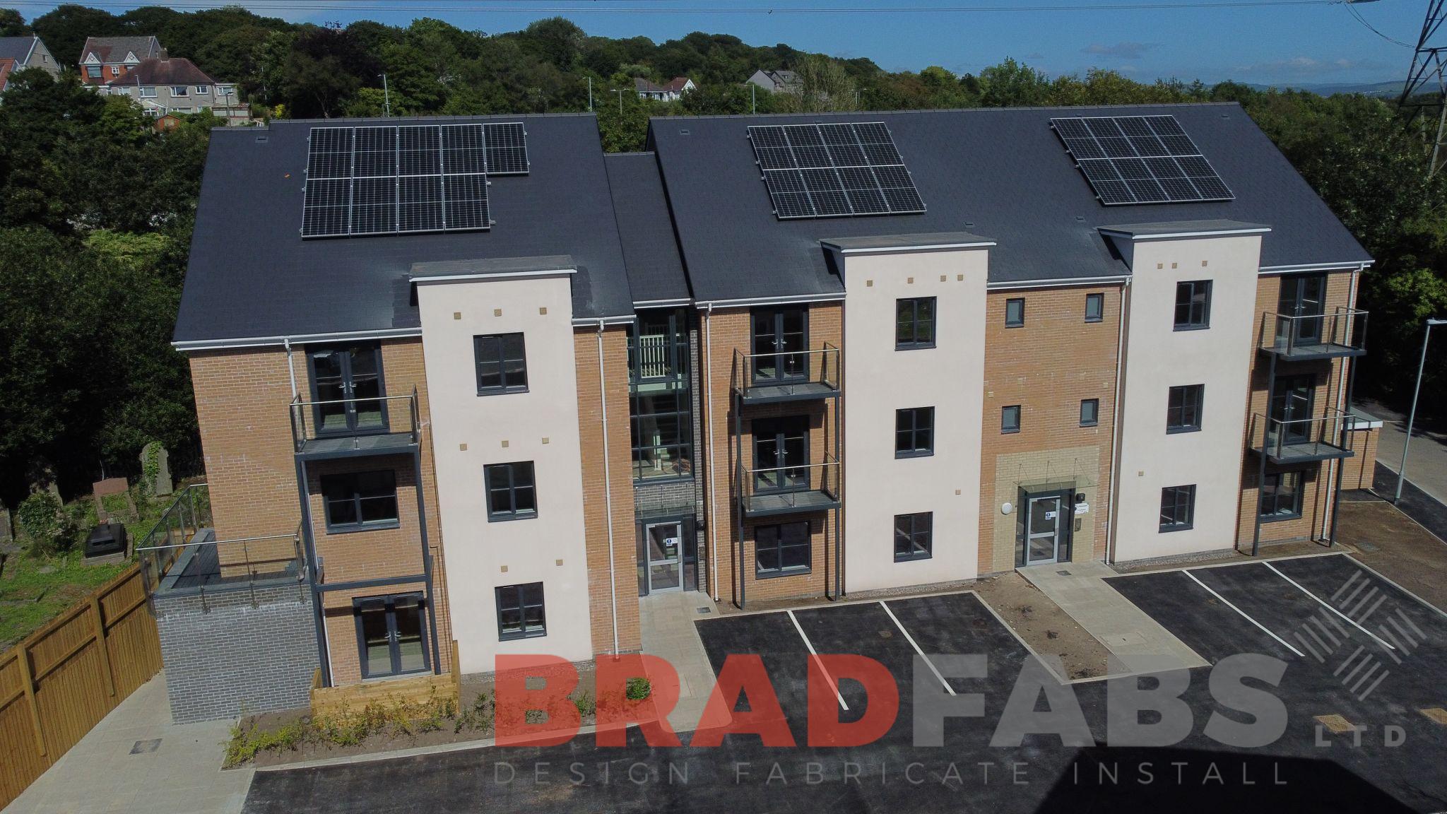 Each balcony is the same size, with glass balustrade and stainless steel top rail