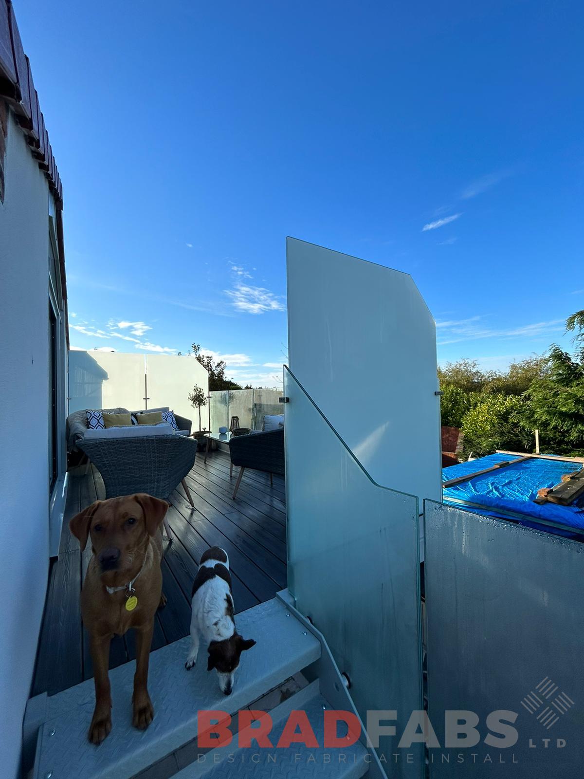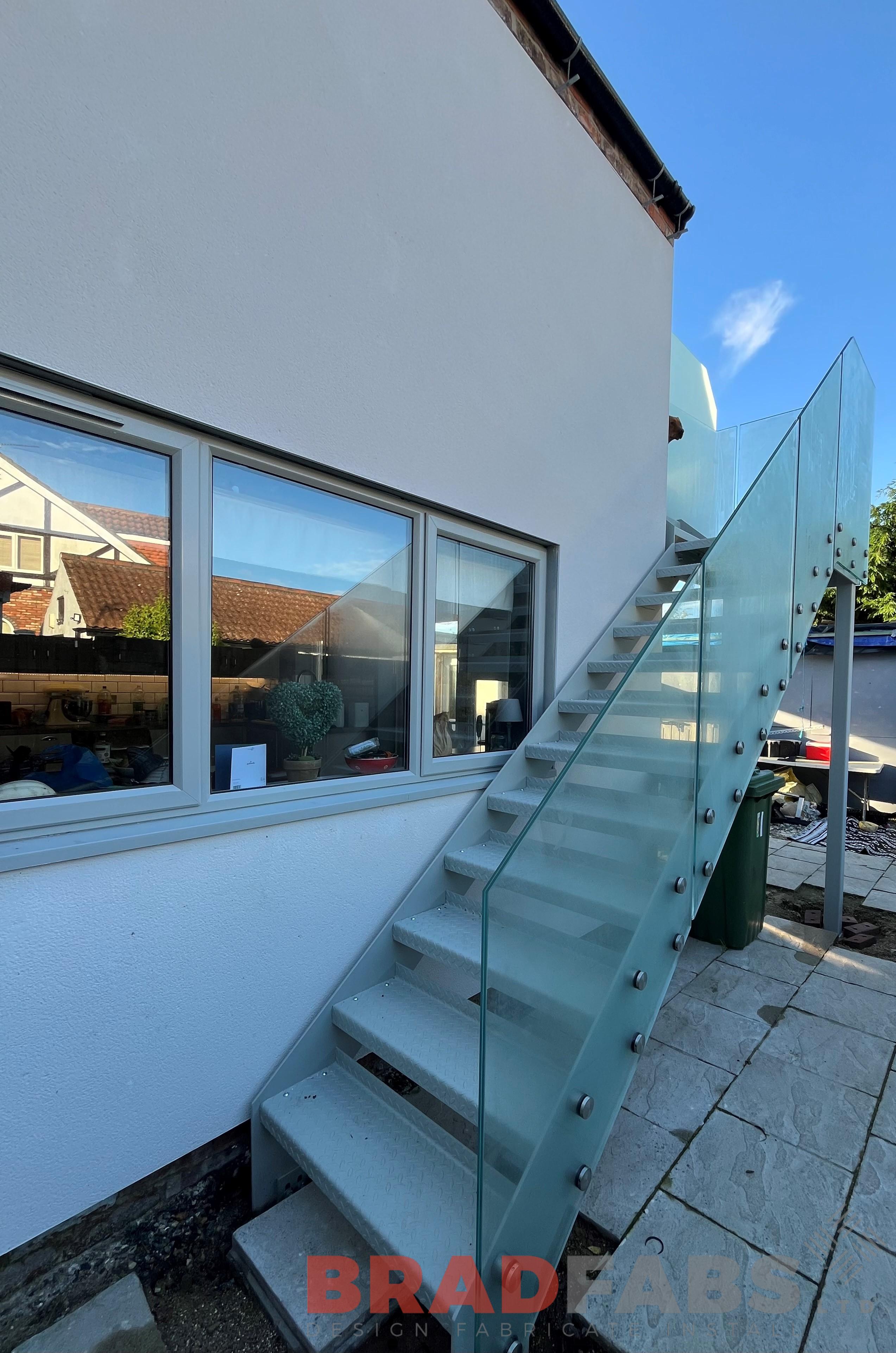 Beautiful addition to our customers home. Bespoke steel balcony with privacy screen to either side and staircase complete with durbar treads leading to the ground floor