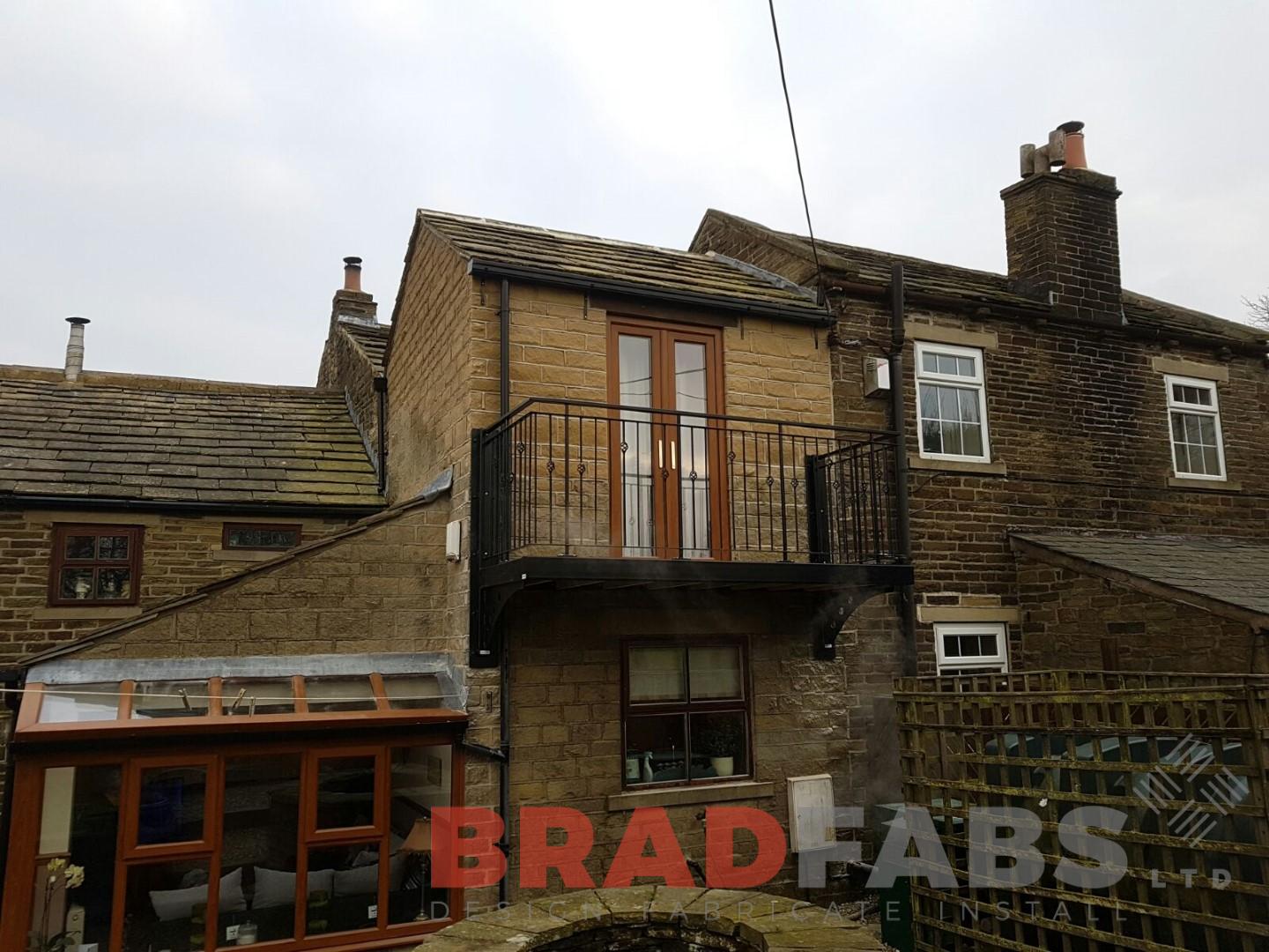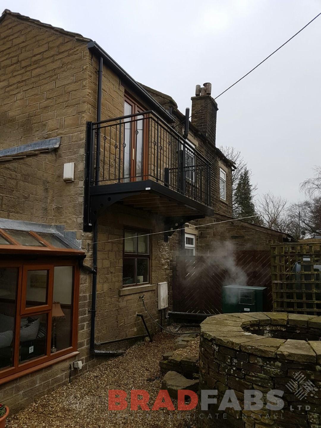 Cantilevered, galvanised and powder coated mild steel balcony with vertical bar balustrade.