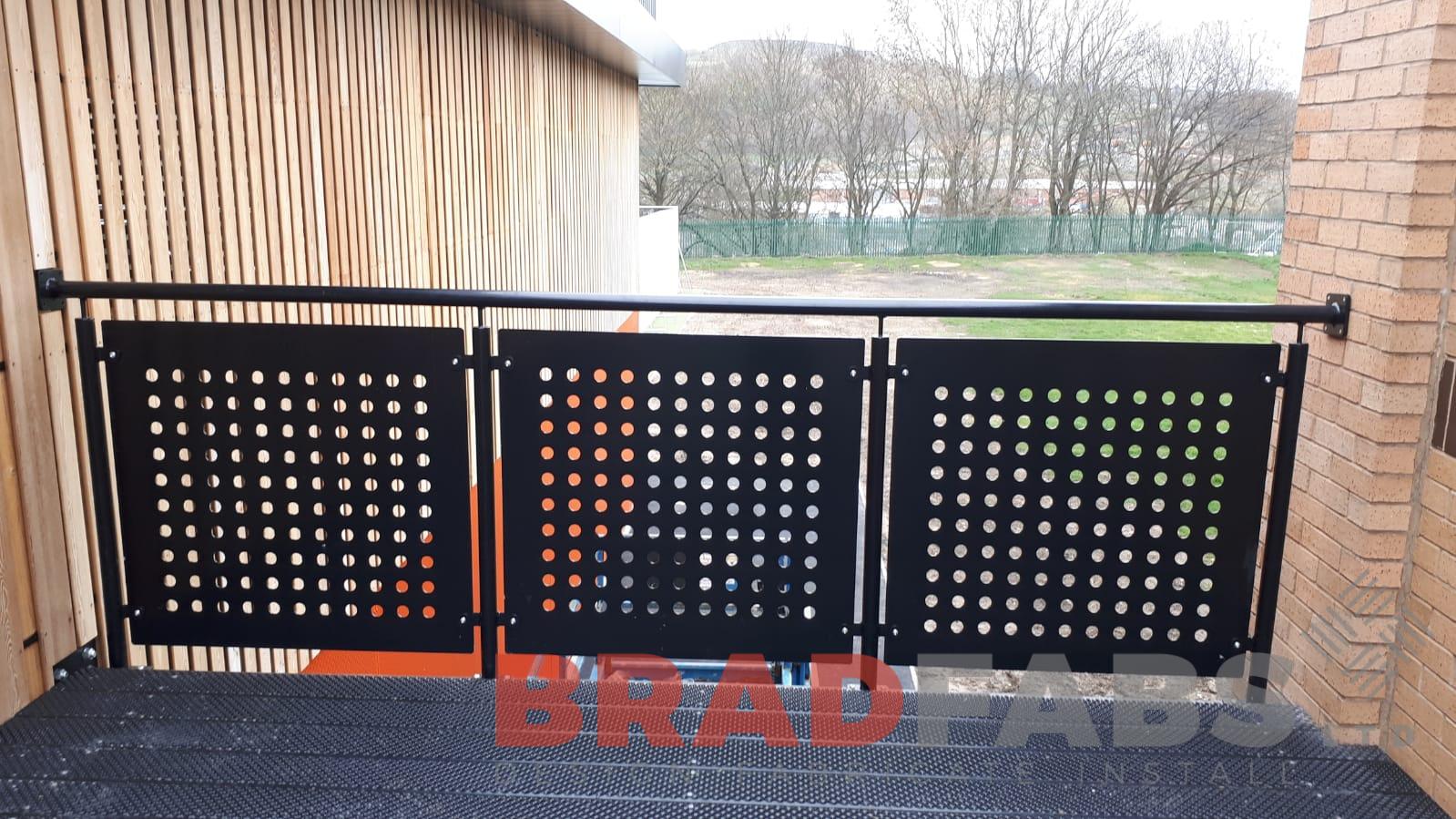 Sophisticated yet attractive decorative balustrade for a commercial property in West Yorkshire. Manufactured in mild steel, galvanised and powder coated in black by the customers choice, another example of our teams skill and hard work!