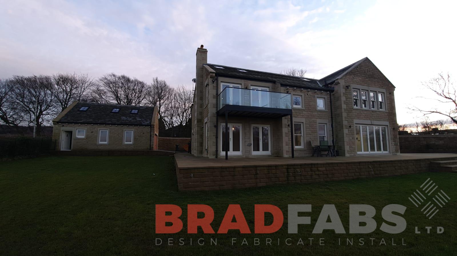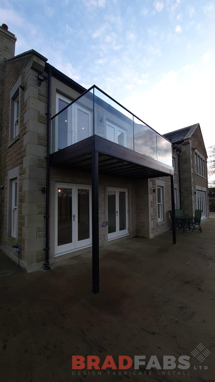 Glass balustrade with mild steel, galvanised and powder coated tubular top rail we added to this already existing balcony for our customer for their stunning home.