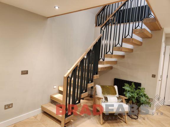Stunning steel balustrade for a domestic property internal staircase, powder coated to colour of our customers choice, making a great feature in their home.