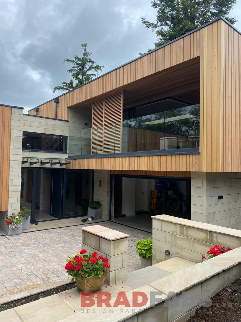 21.5mm laminated external glass balustrade, base fixed in powder coated channel system