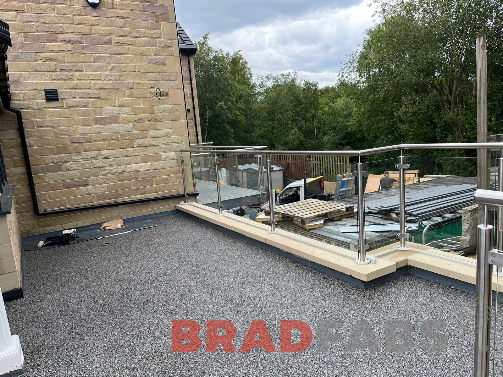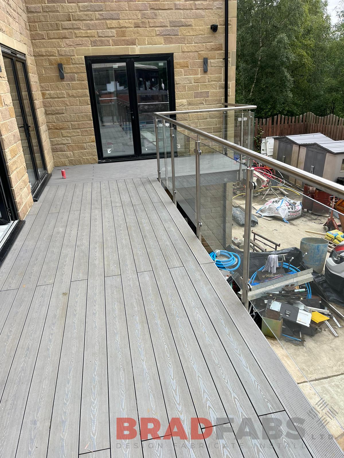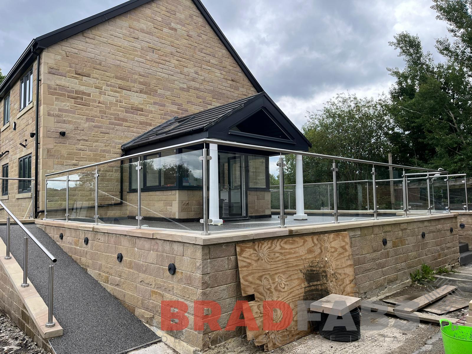 Stainless steel post with glass infill panel balustrade for an external project designed, supplied and installed by Bradfabs