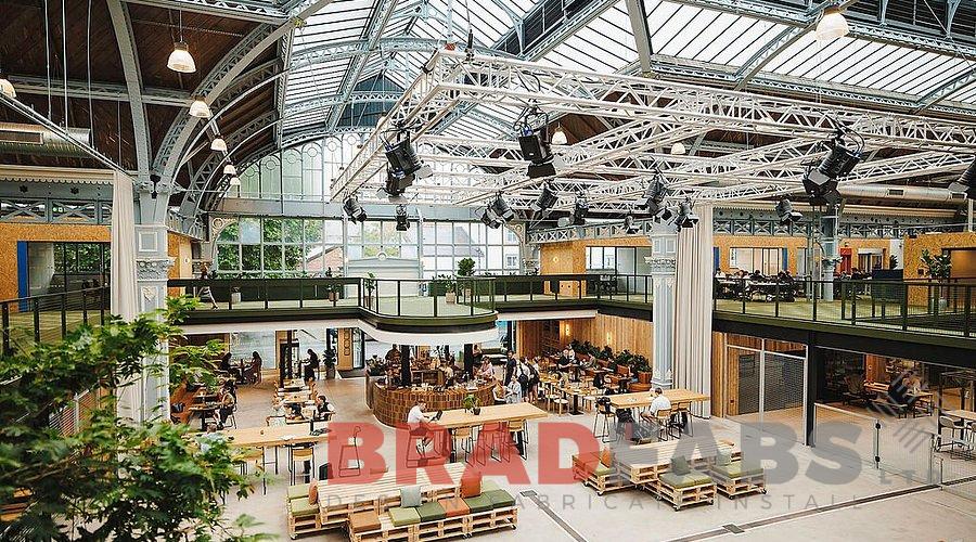 We installed and manufactured at Campfield Market Hall in Manchester along side the staircases mesh infill panel balustrade in powder coated finish