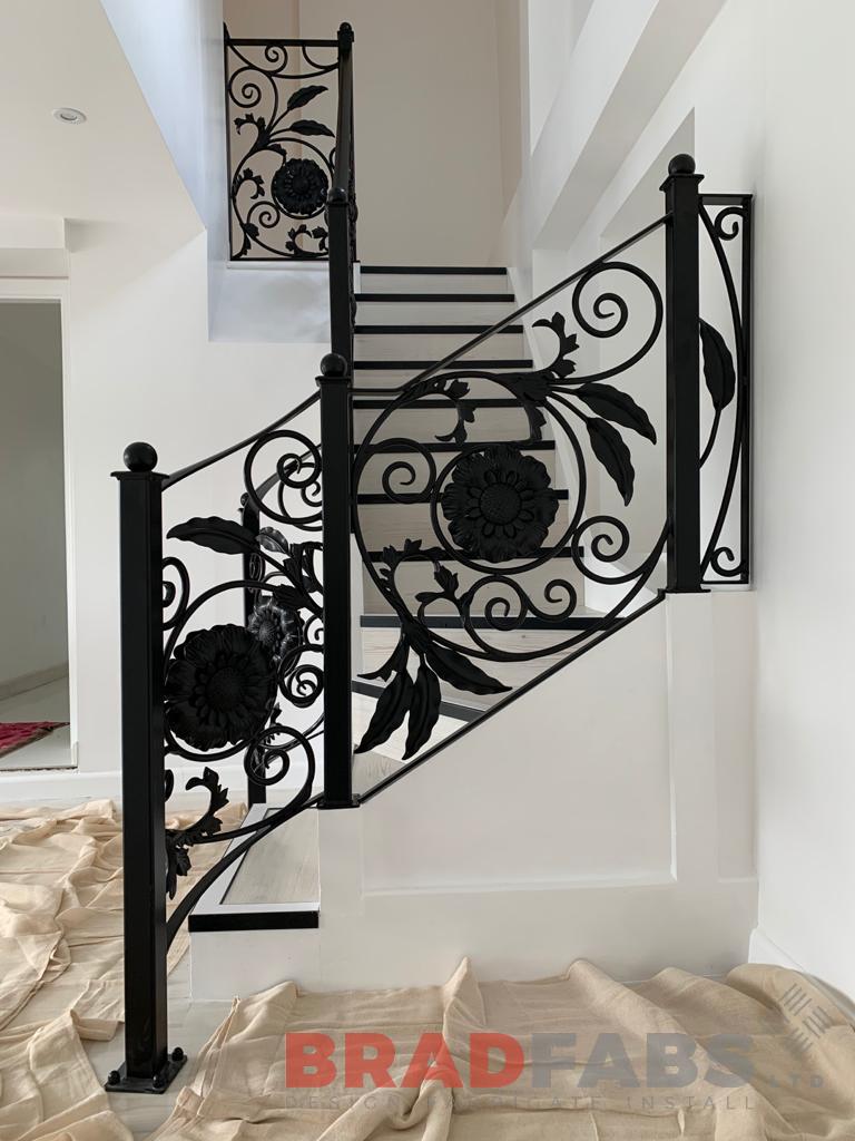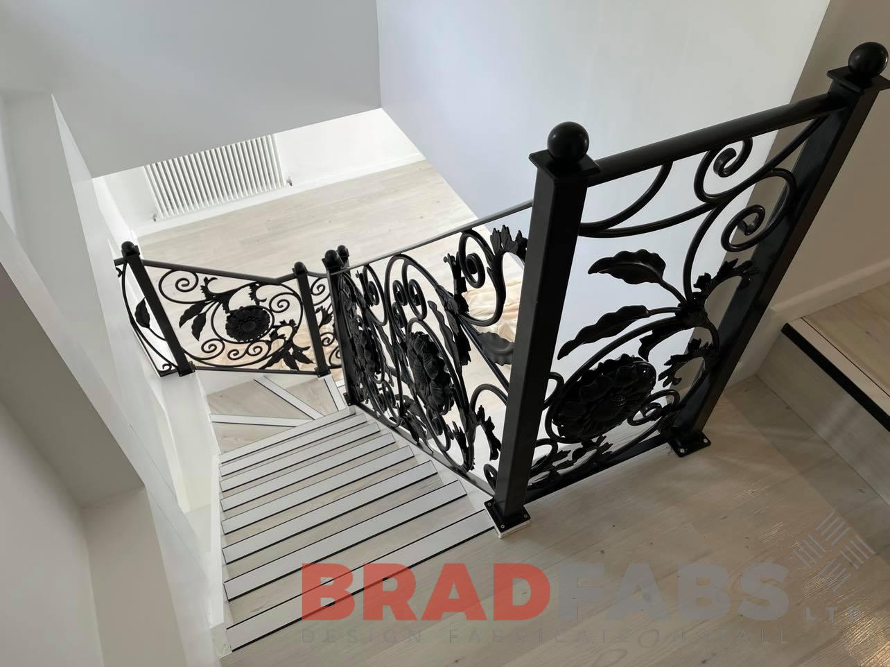 Stunning decorative balustrade for a domestic customers internal staircase. Manufactured in mild steel and powder coated, all bespoke, designed, supplied and installed by our team.