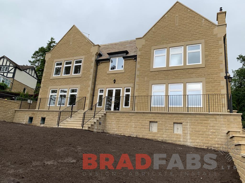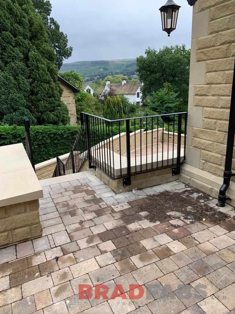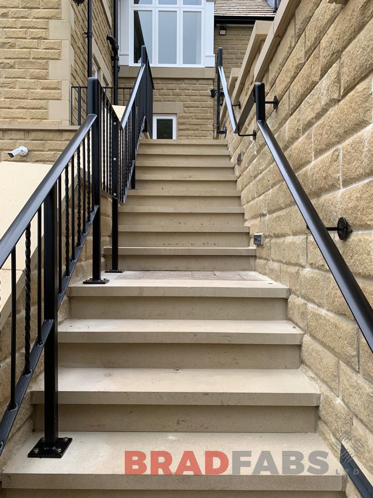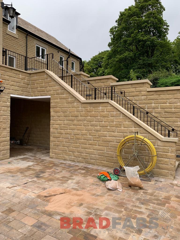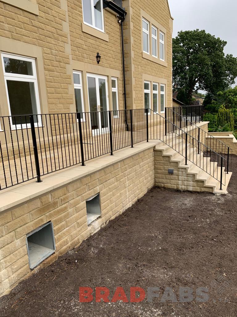 Commercial project with mild steel, galvanised and powder coated black vertical bar balustrade and tubular top rail, all bespoke by Bradfabs