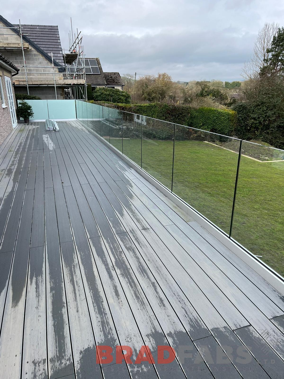 Channel system infinity glass balustrade with privacy screen to either side for a domestic properties