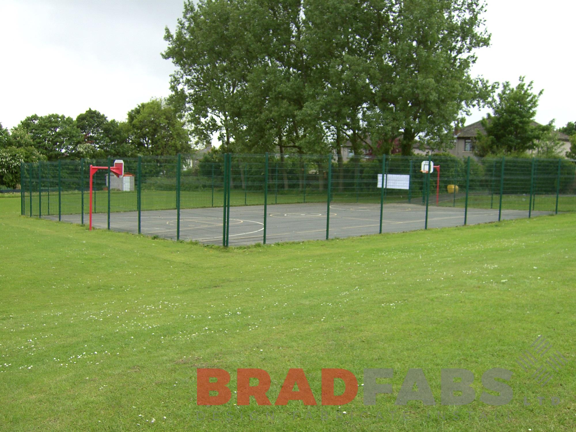 This sports fencing system offers a cost effective impact boundary, which is ideal for sport grounds and this basketball court. It is fabricated in galvanized mild steel, powder coated green and installed to your requirements.