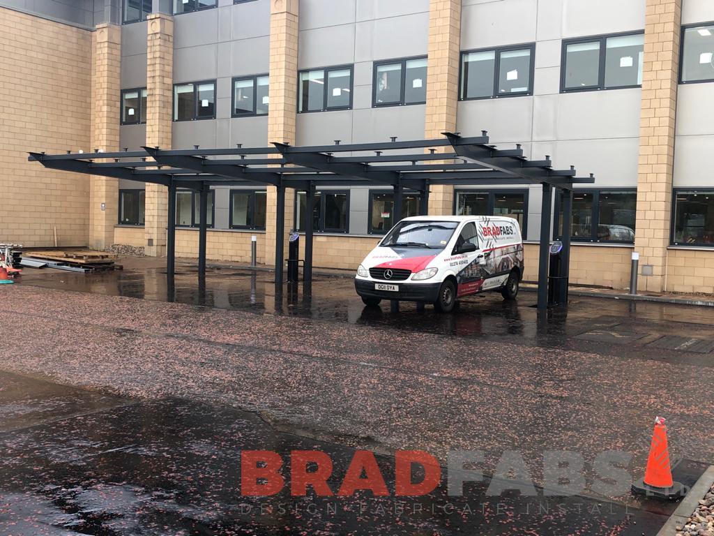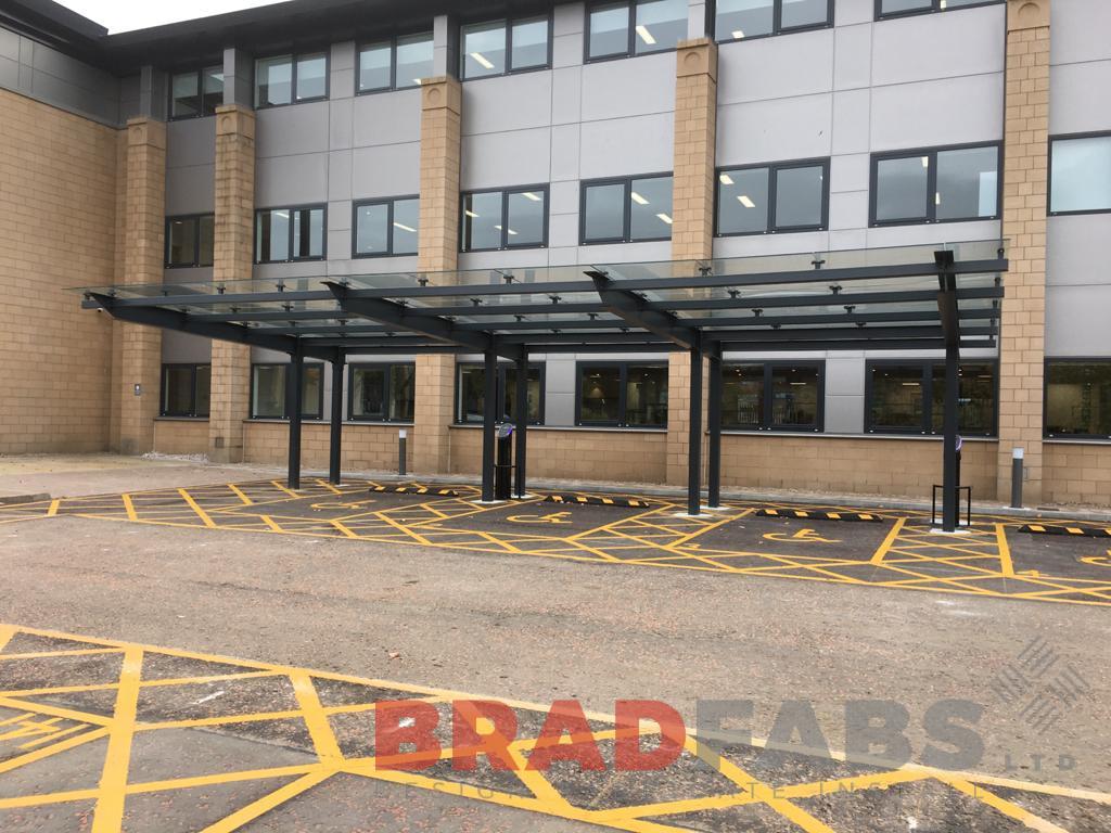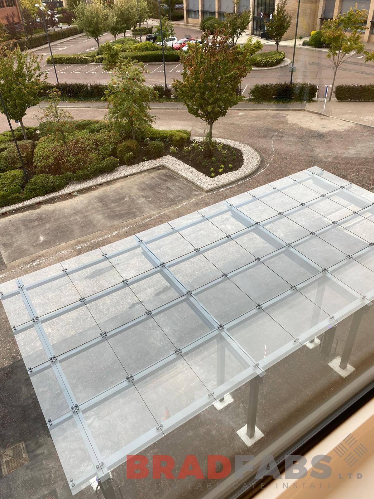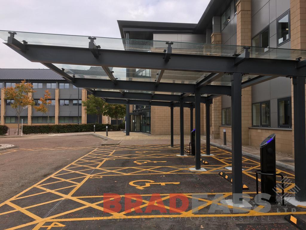 Large glass canopy for a commercial building in Edinburgh