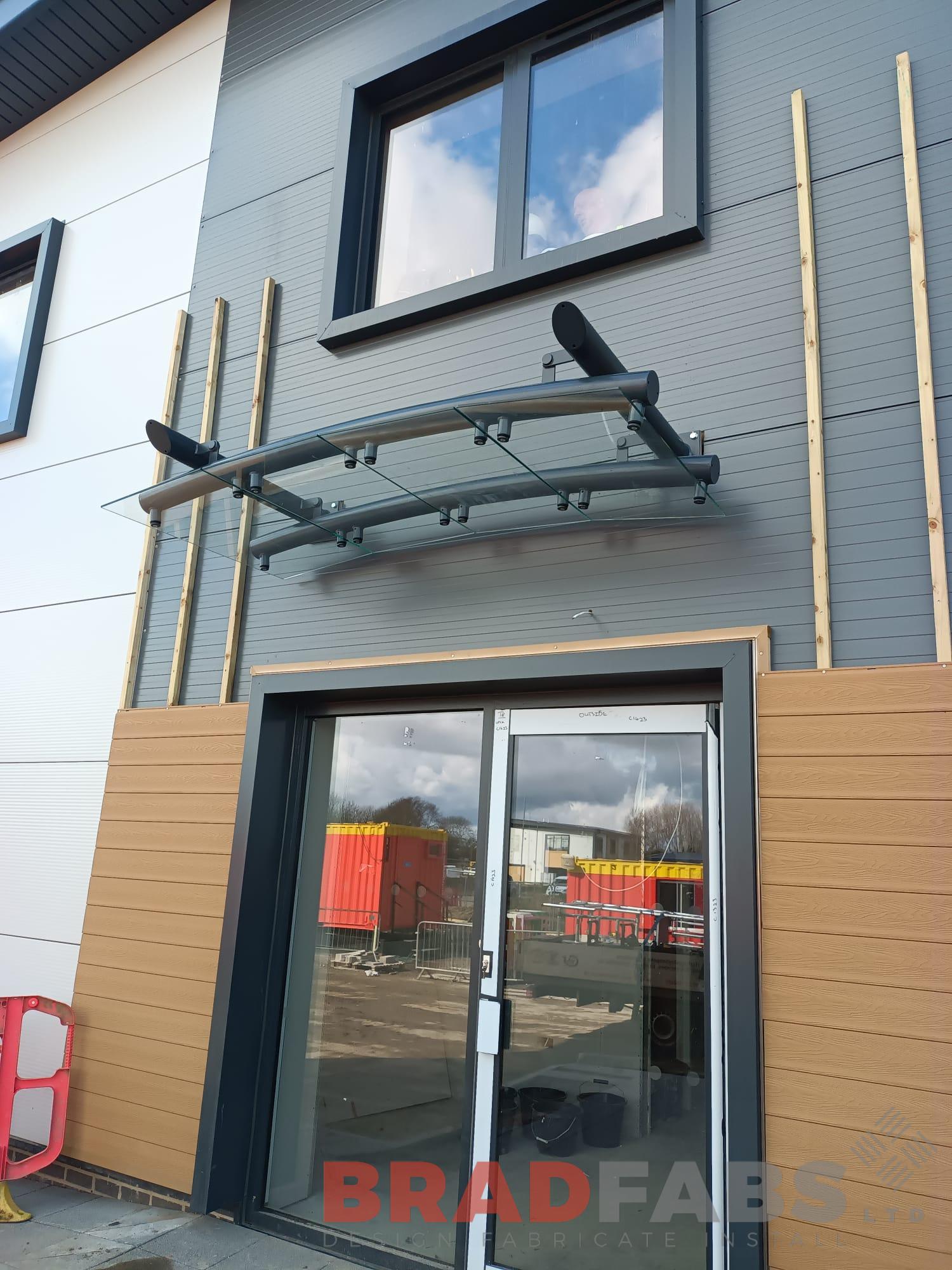 Small bespoke canopy with clear toughened laminated glass roof