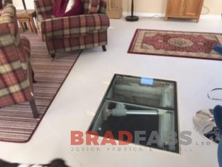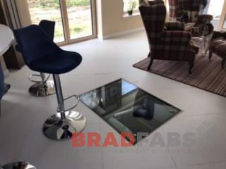 Electronically operated cellar hatch door for a domestic property, with 25mm toughened laminated glass