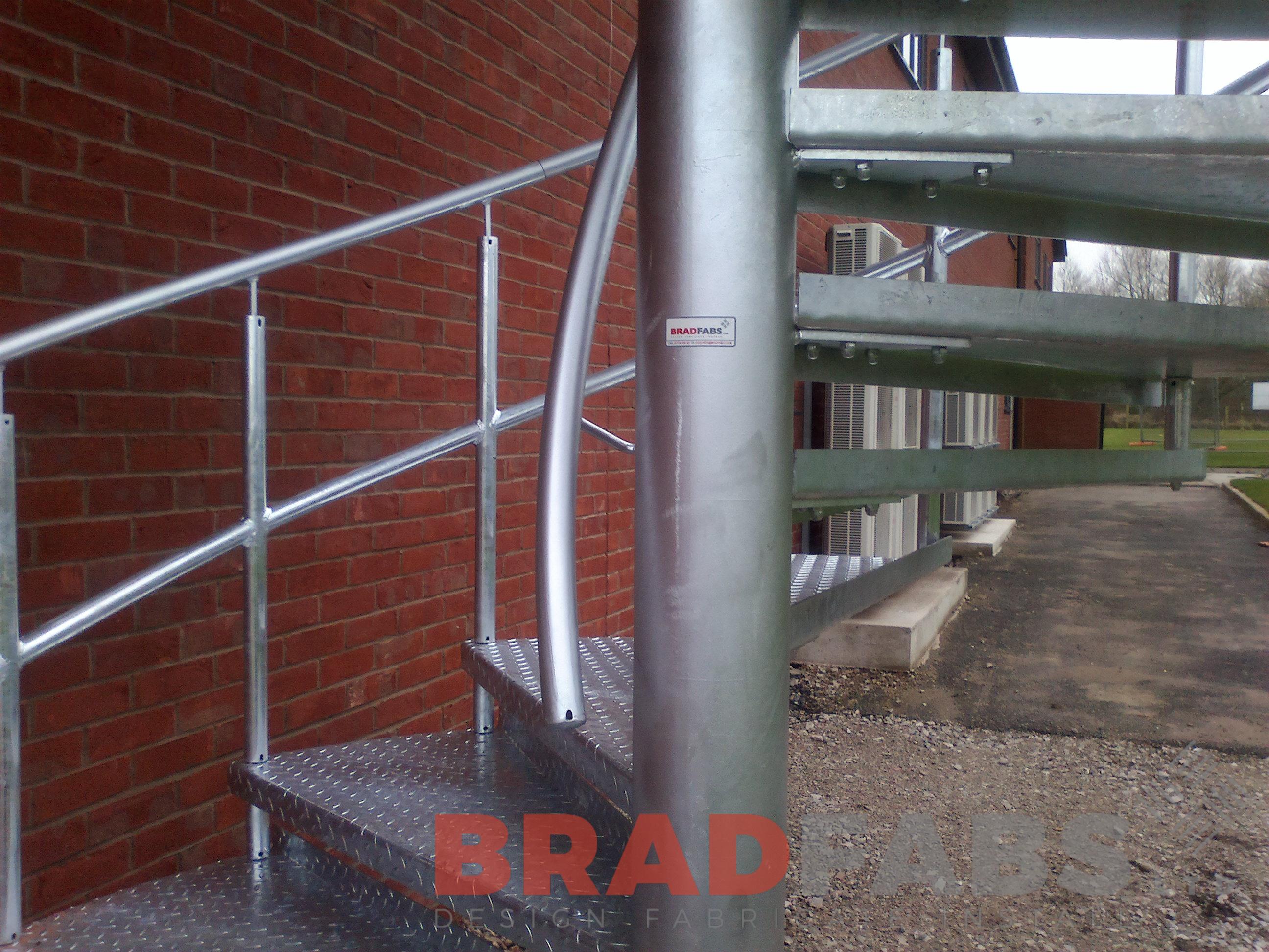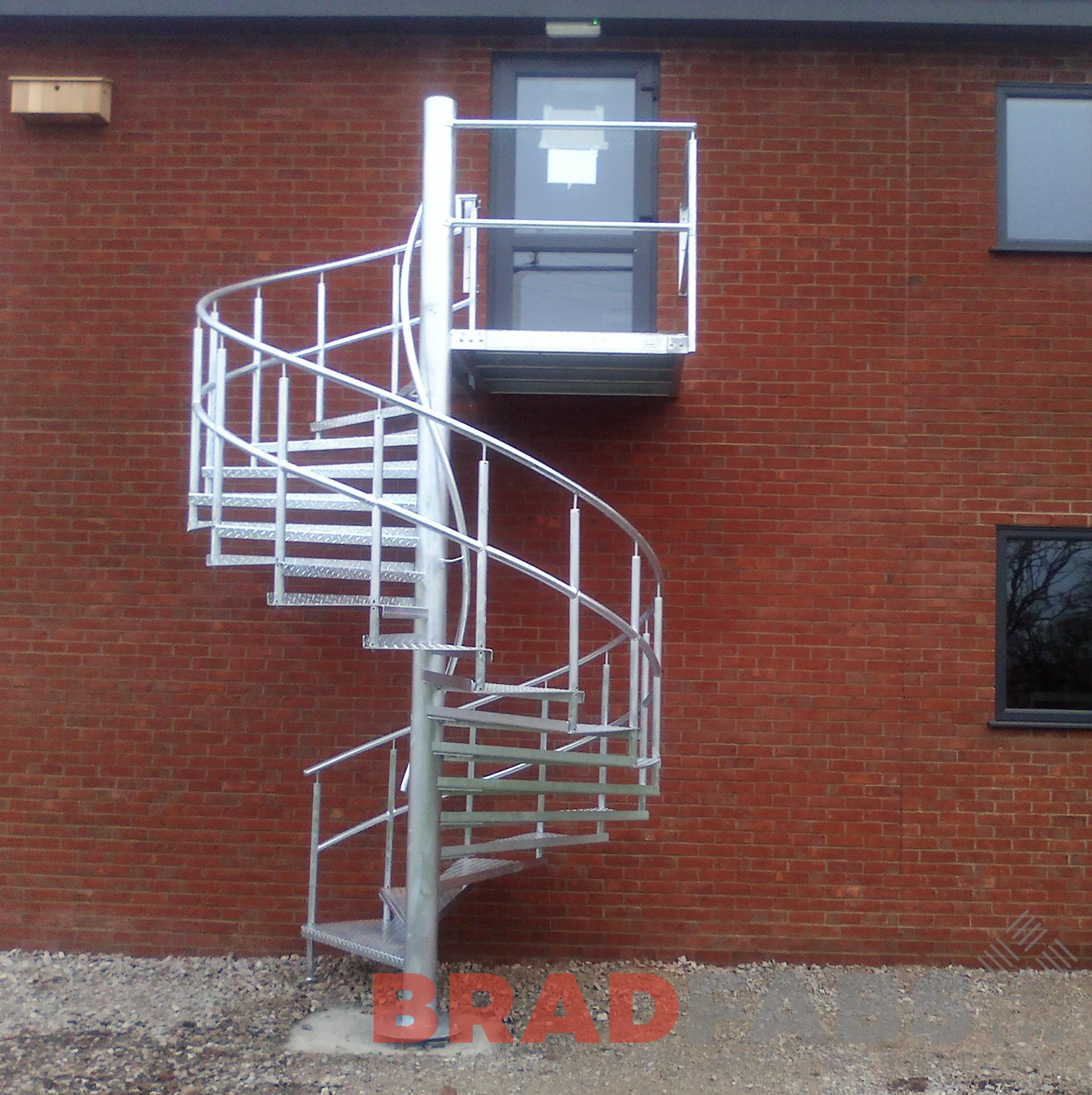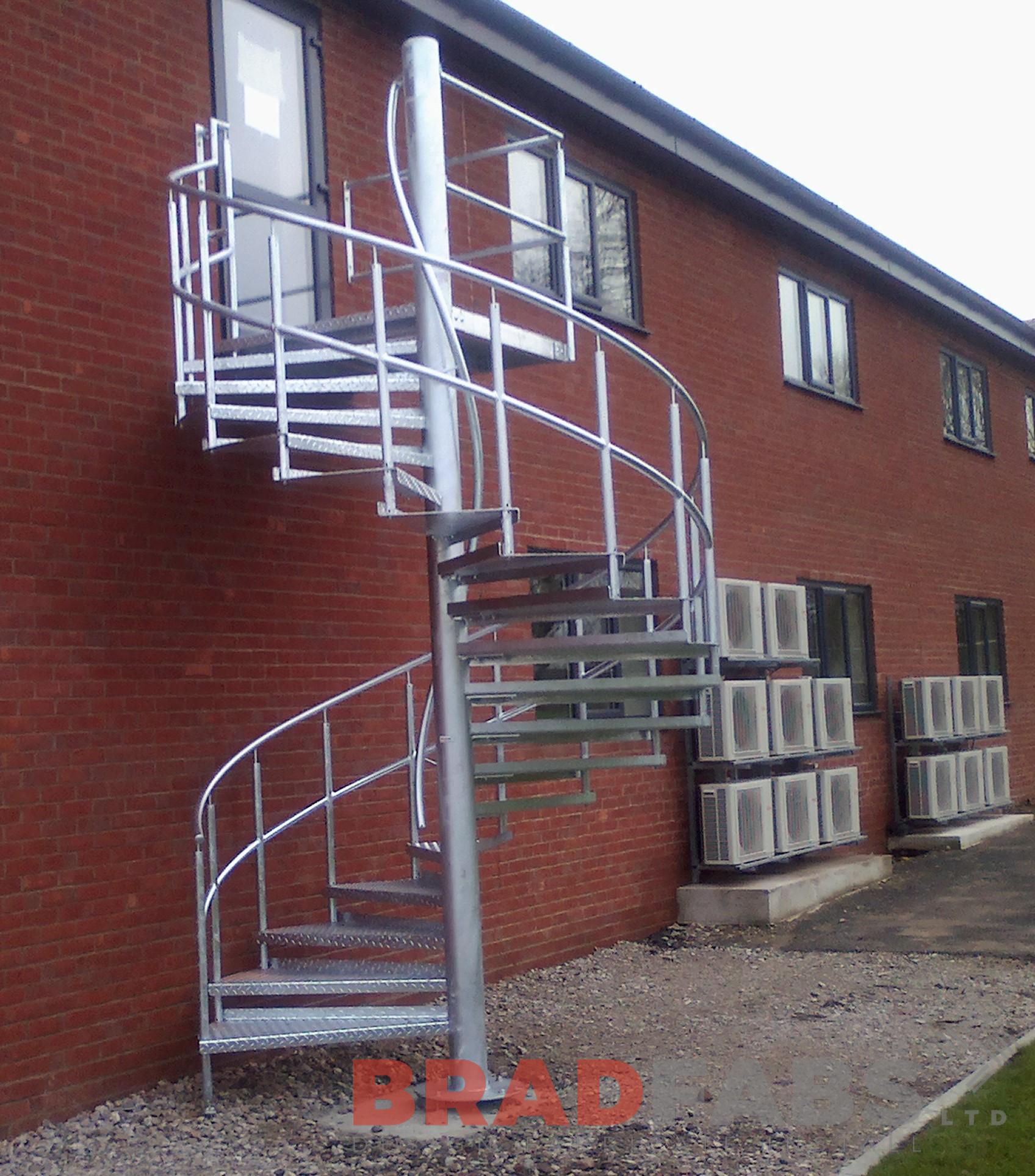 Bradfabs fabricates countless spiral staircases and this is a classic example of the more typical commercial fire escape we make, However each one is unique to the customers requirements after a site visit.