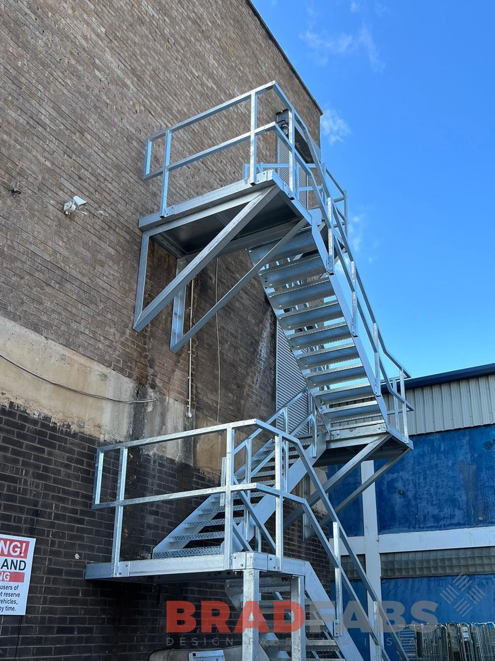 Four flight external staircase with top and mid rail balustrade and durbar treads