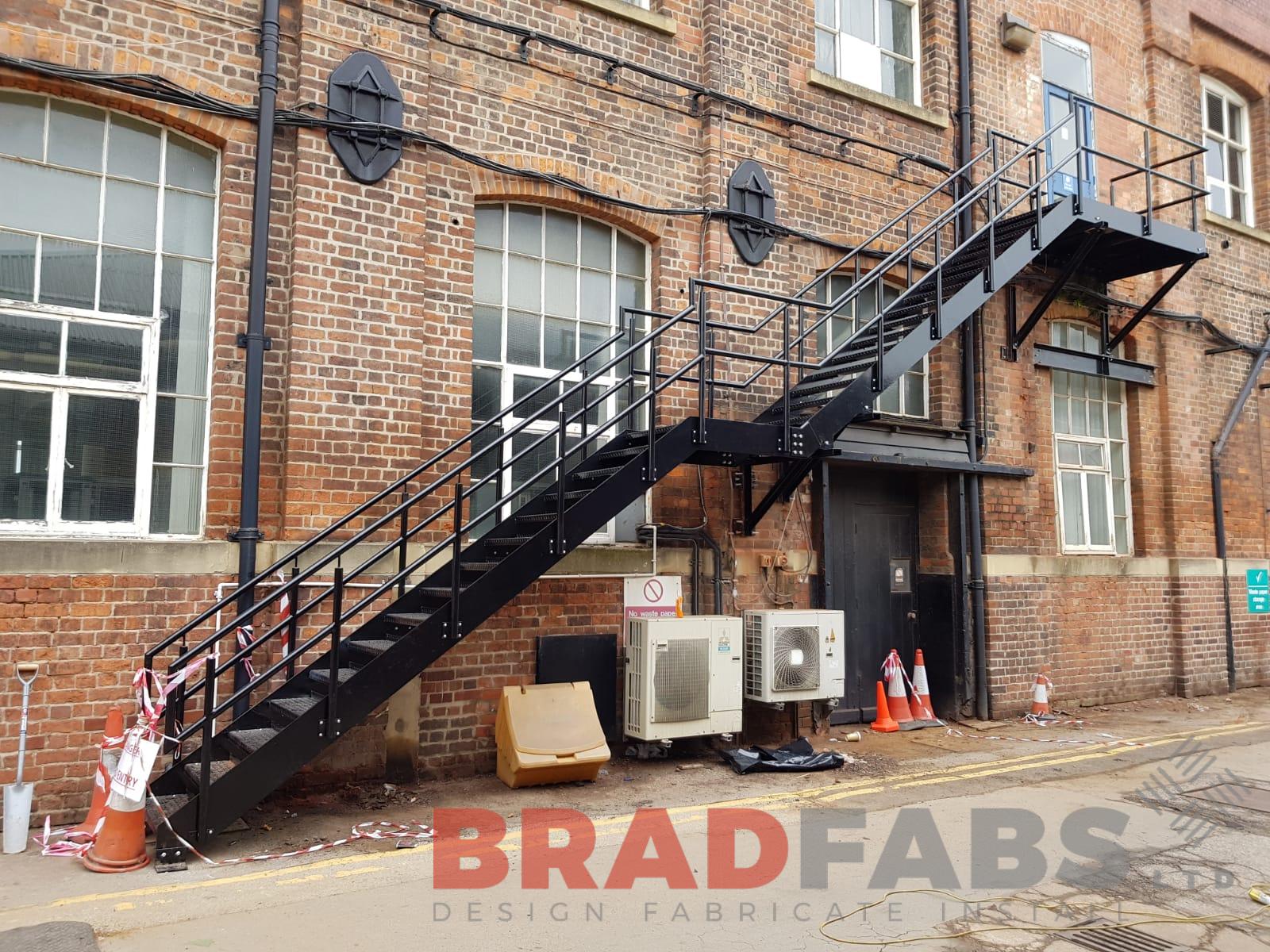 This straight large powder coated Fire Escape was designed, manufactured and installed by Bradfabs as a replacement to the existing.