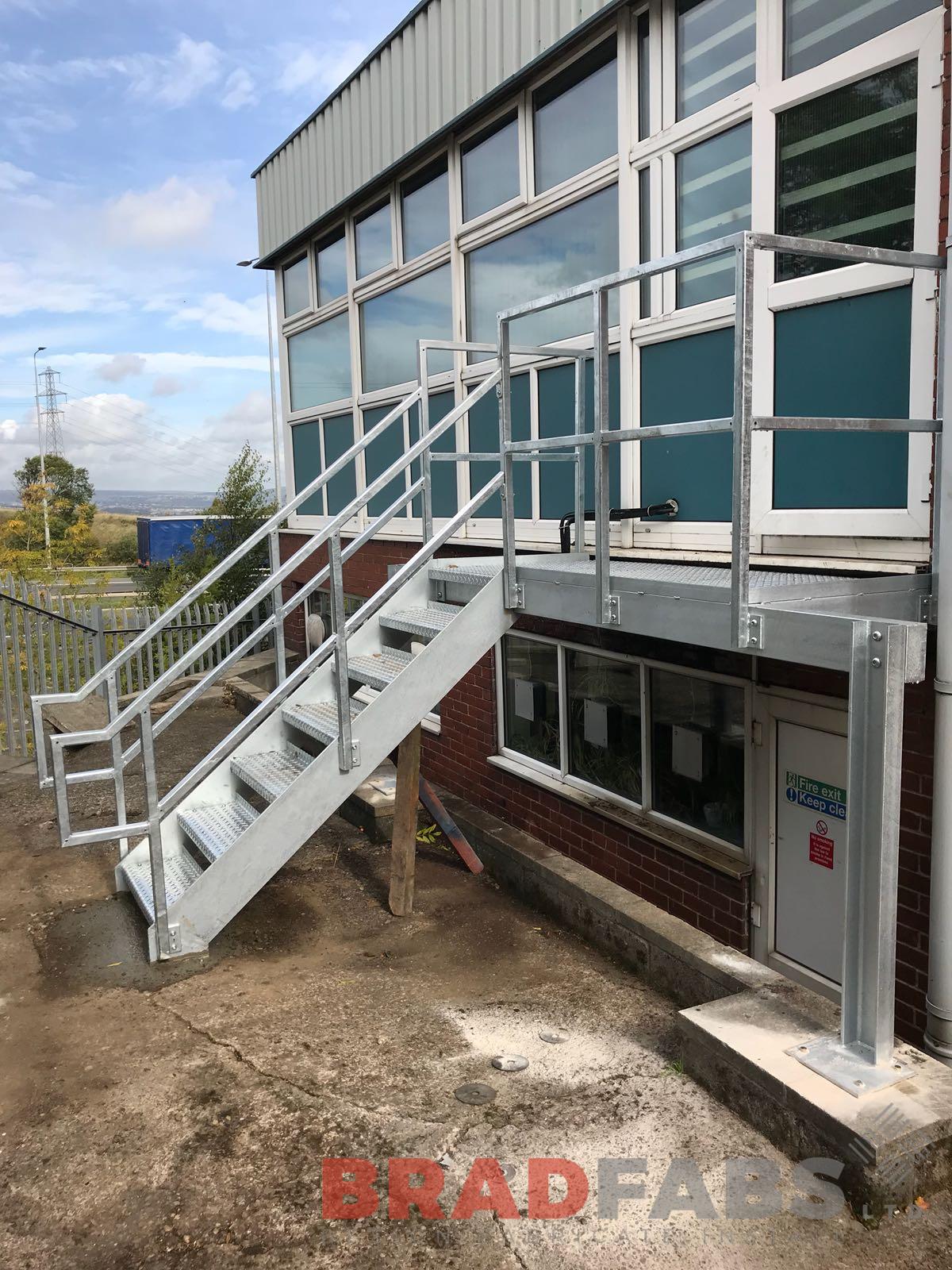 A recent installation by Bradfabs, a small external access Fire Escape in mild steel and galvanised for a local commercial company
