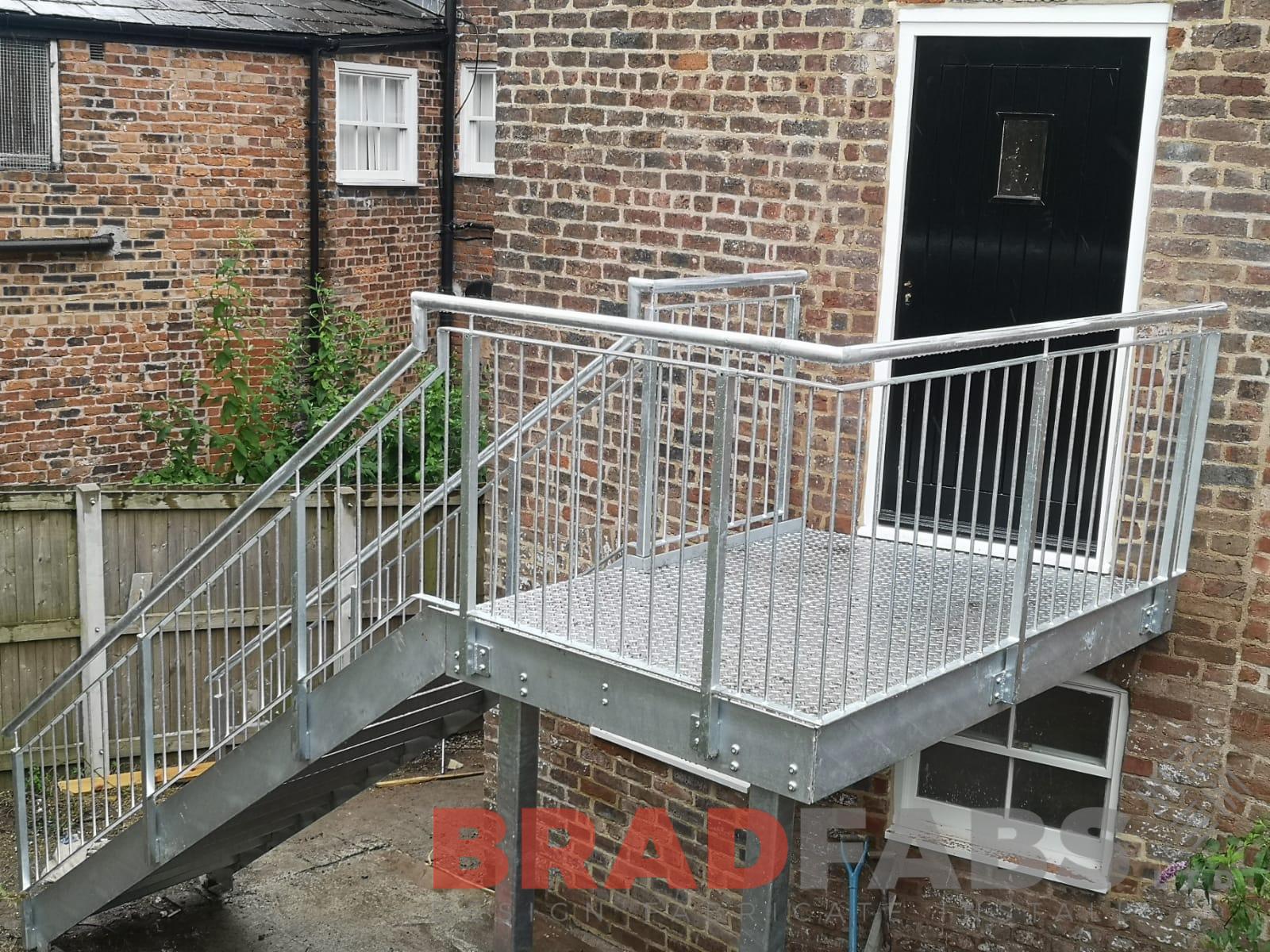 Mild steel and galvanised straight fire escape stairs with durbar treads and vertical bar balustrade - perfect for our customers requirements.