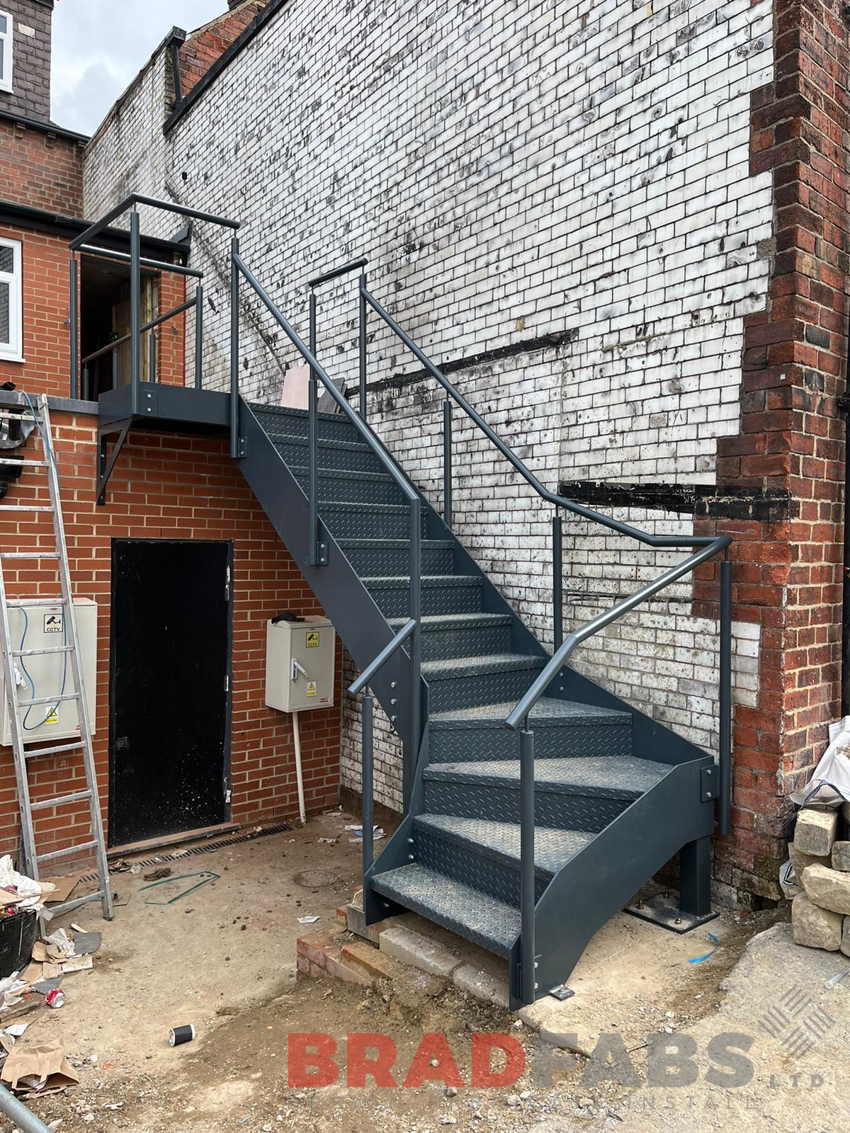 Fire Escape with mild steel, galvanised and powder coated posts, complete with durbar treads