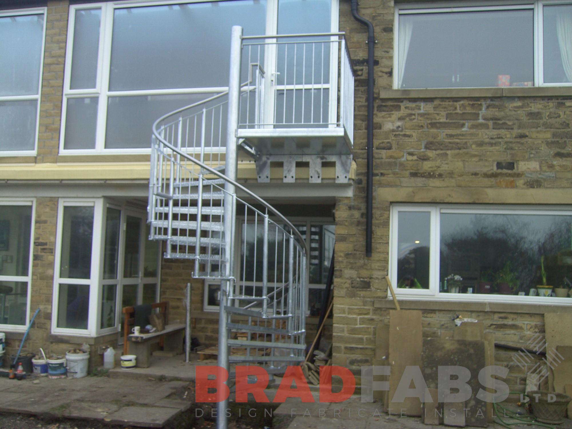 Bradfabs fabricated this spiral staircase to meet the customers exact requirements, made using galvanized anti slip mild steel, features a landing and fitted to a house in Bradford, West Yorkshire.